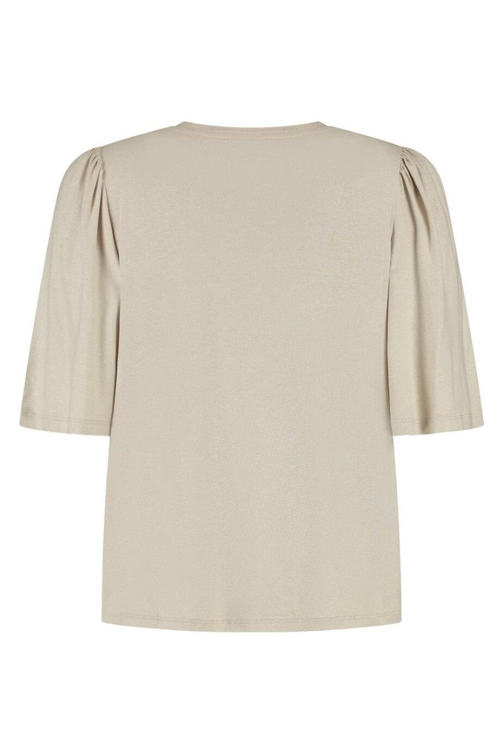 Dit vrouwelijke T-shirt van Lady Day straalt eenvoud en elegantie uit. Het is uitgevoerd in een zachte zandkleur en heeft een subtiele glans dankzij de glitters verweven in de stof. Gemaakt van 95% viscose en 5% elastaan, biedt dit shirt een comfortabele pasvorm die natuurlijk met elke beweging meebeweegt. De ronde halslijn en de korte mouwen geven het een casual uitstraling, perfect voor zomerse dagen. Met zijn regular fit en normale lengte past dit T-shirt moeiteloos bij verschillende kledingstukken. De licht geplooide mouwen voegen een vleugje verfijning toe, waardoor dit shirt niet alleen geschikt is voor een ontspannen dag thuis, maar ook voor een gezellige lunch met vriendinnen of een zonnige middag in het park. Combineer het met een jeans of een luchtige rok om jouw outfit compleet te maken.