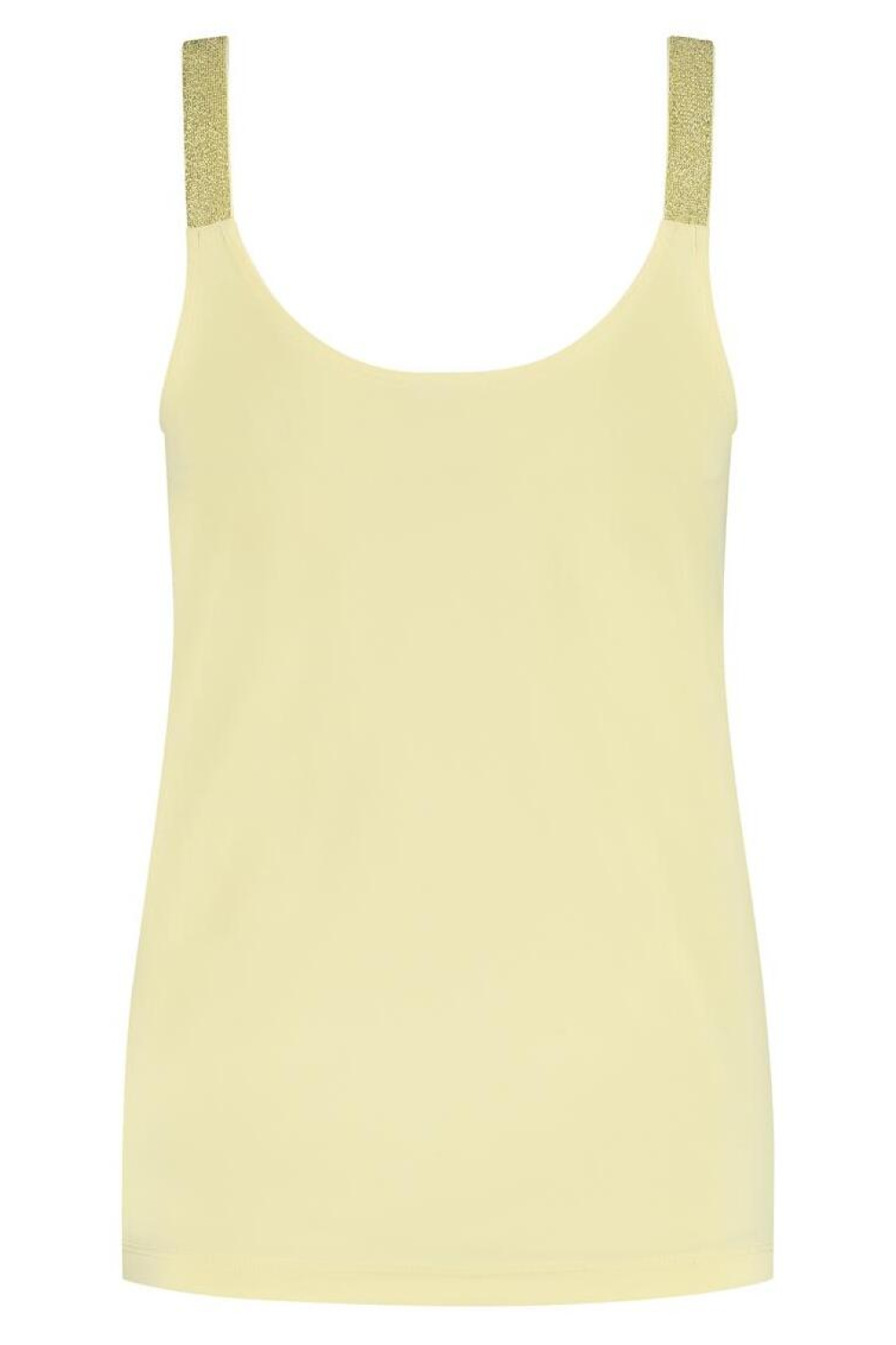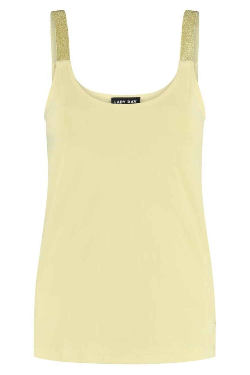 Deze stijlvolle en subtiele top van Lady Day is een perfecte aanvulling voor je zomergarderobe. De top is uitgevoerd in een zachte gele tint met glinsterende schouderbandjes die een vleugje glamour toevoegen aan een verder eenvoudige look. Gemaakt van een comfortabele mix van 80% polyamide en 20% elastan, biedt deze mouwloze top de nodige flexibiliteit en een flatterende slim fit pasvorm. De ronde halslijn zorgt voor een tijdloze en casual uitstraling, ideaal voor zowel informele als meer elegante gelegenheden. Met zijn normale lengte is deze Lady Day top makkelijk te combineren met verschillende outfits. Draag deze top bijvoorbeeld met een lichte jeans voor een ontspannen zomerse look, of style het met een rok voor een iets formeler gevoel. De glitters in de schouderbanden geven net dat beetje extra flair, waardoor de top zowel overdag als 's avonds gedragen kan worden. Of je nu een dagje uitgaat of een avondje op het terras doorbrengt, deze top is een veelzijdige keuze die je altijd goed van pas komt.