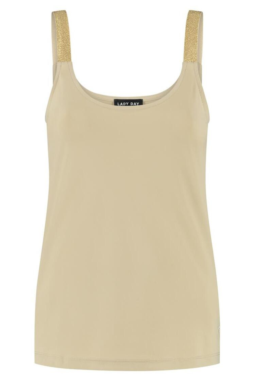 De Lady Day top, uitgevoerd in de zachte kleur 'SHELL', biedt een stijlvolle touch aan je zomergarderobe. De glinsterende schouderbanden met een subtiele glitterpatroon geven de top een elegante uitstraling die zowel opvalt als veelzijdig is. Dit mouwloze ontwerp zorgt voor een luchtig gevoel, perfect voor warme zomerdagen. Gemaakt van een blend van 80% polyamide en 20% elastaan, biedt deze slim fit top zowel comfort als een rekbare pasvorm die mooi aansluit op het lichaam. Met zijn casual stijl en ronde hals past deze top perfect bij een losse jeans voor een relaxte dag, of gecombineerd met een rok voor een avondje uit. De normale lengte maakt hem gemakkelijk te dragen onder een jasje of als op zichzelf staand item. Of je nu een dagje winkelt, een middag op een terras doorbrengt of naar een zomerfeest gaat, deze Lady Day top voegt elegantie en comfort toe aan jouw outfit. Met aandacht voor duurzaamheid is het ook een bewuste keuze voor je kledingcollectie.