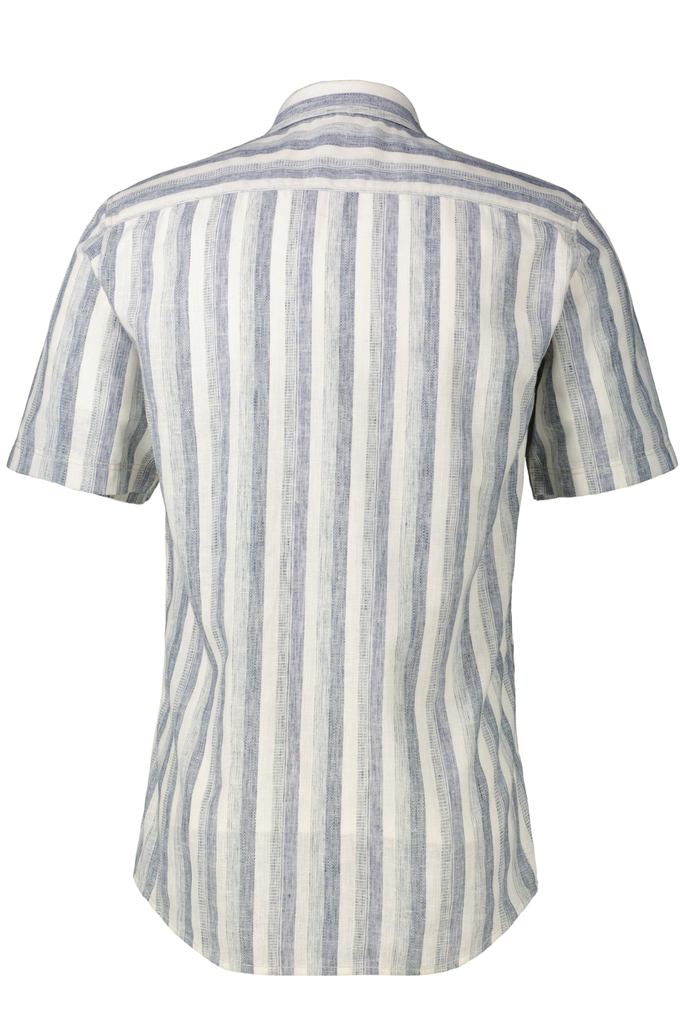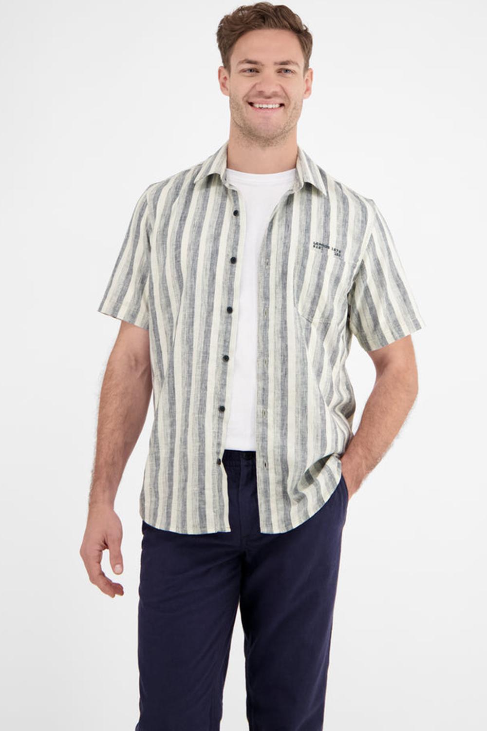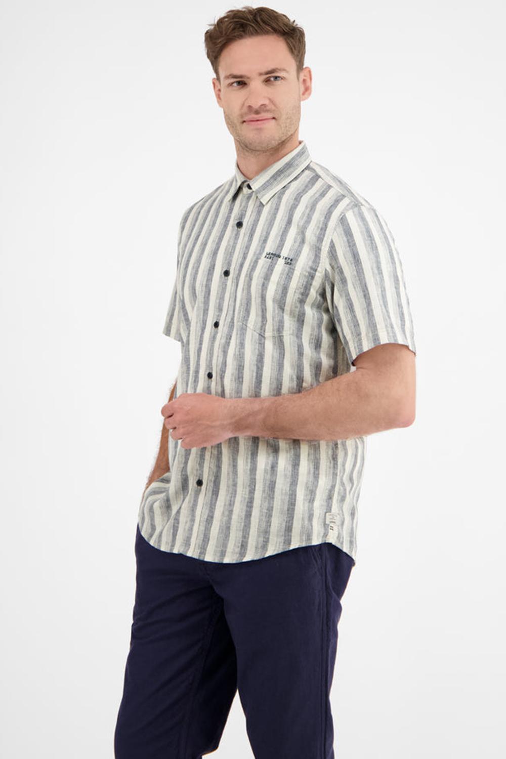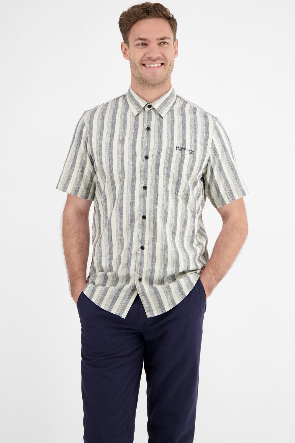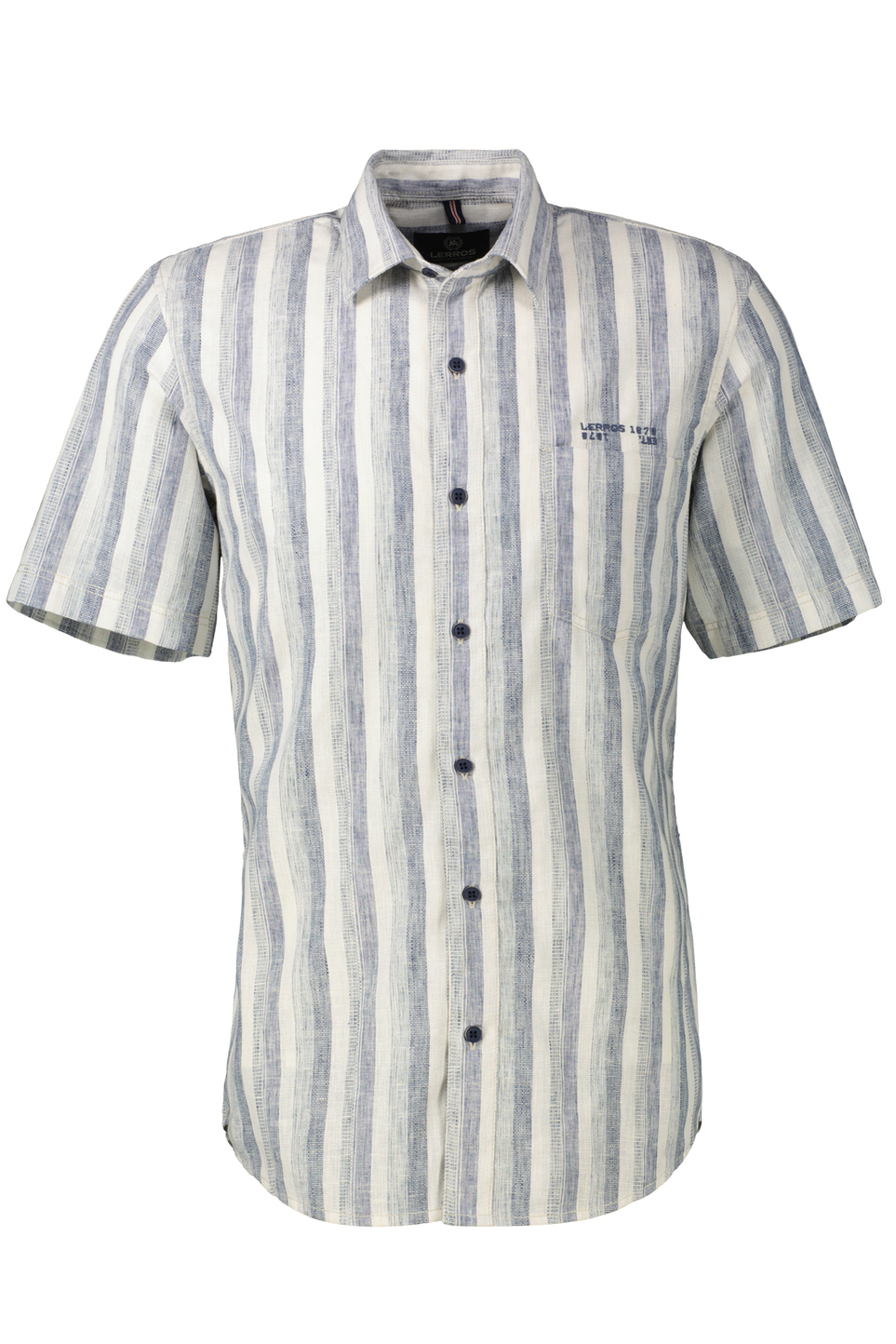 Overhemd van Lerros met korte mouwen. Dit item is voorzien van een puntkraag en sluit met knopen aan de voorkant. Het overhemd heeft een borstzak en een allover gestreept patroon.
