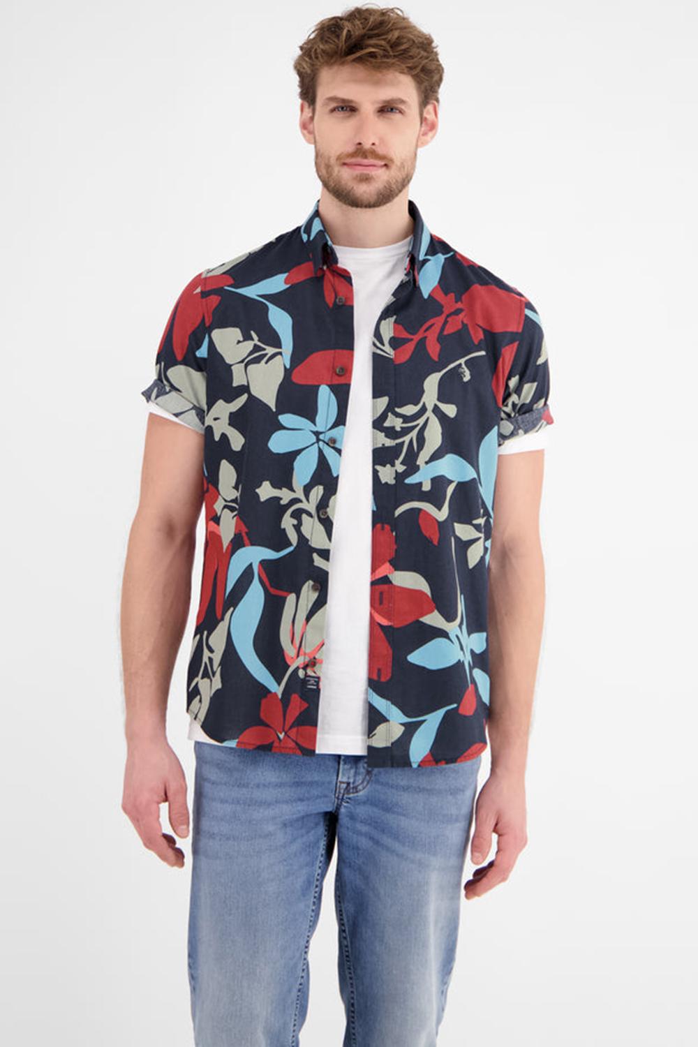 Overhemd van Lerros met korte mouwen. Dit item is voorzien van een button down kraag en sluit met knopen aan de voorkant. Het overhemd heeft een allover grafisch patroon.