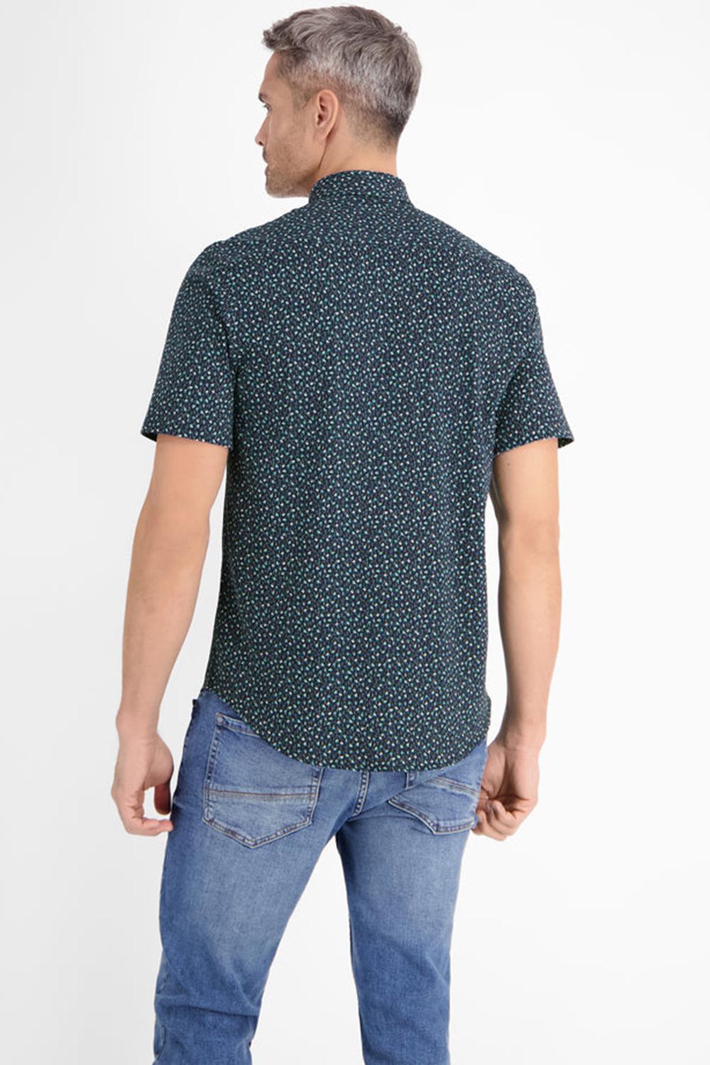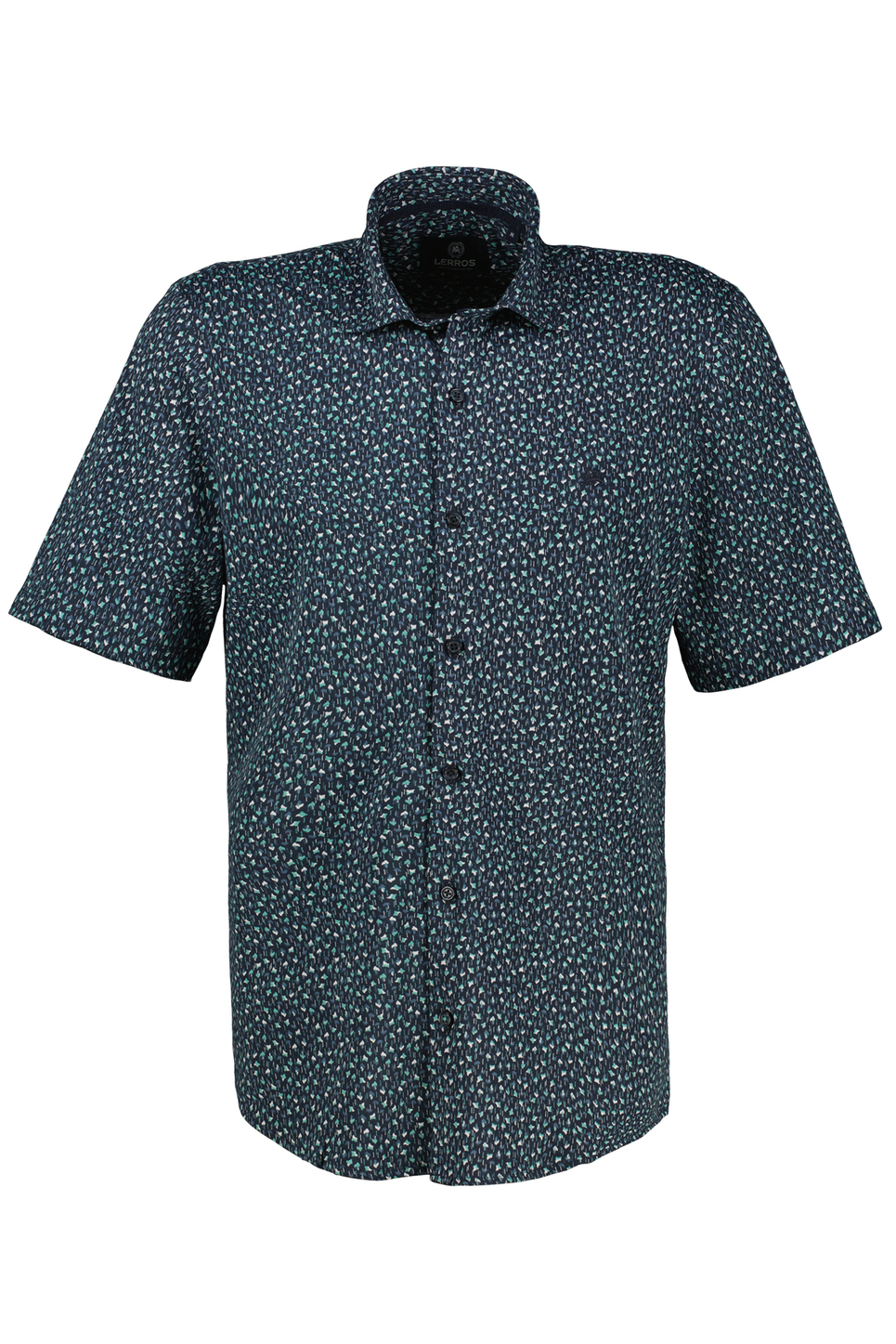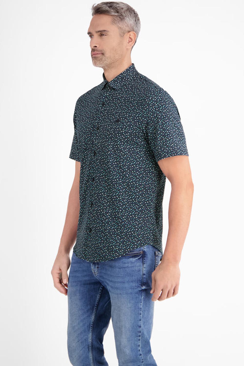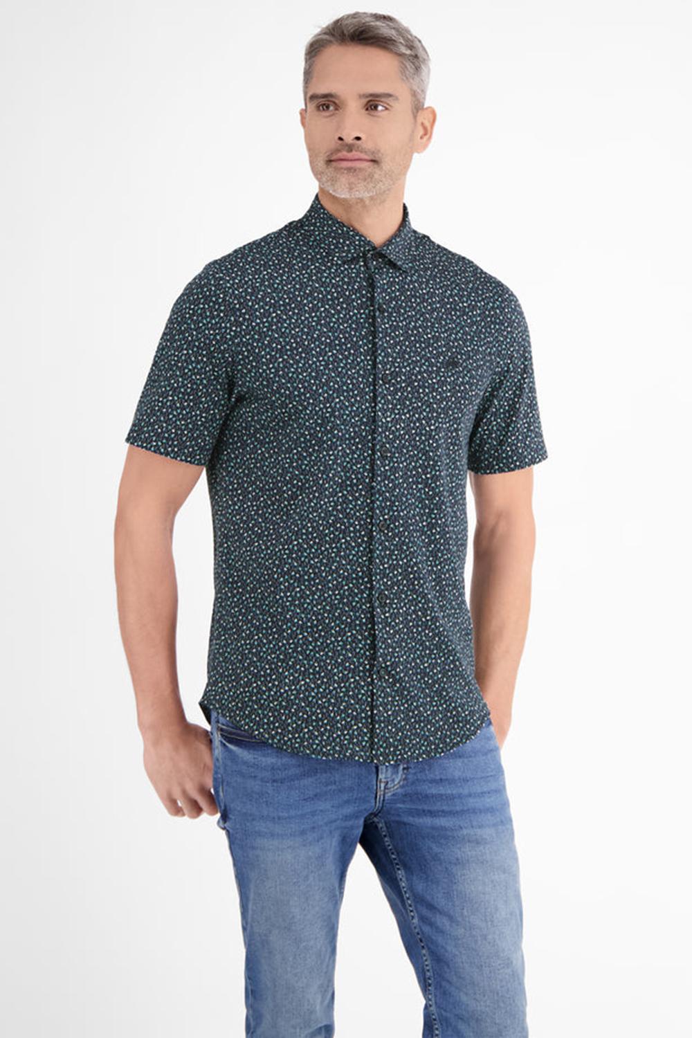 Overhemd van Lerros met korte mouwen. Dit item is voorzien van een puntkraag en sluit met knopen aan de voorkant. Het overhemd heeft een allover grafisch patroon en het logo van Lerros op borsthoogte.