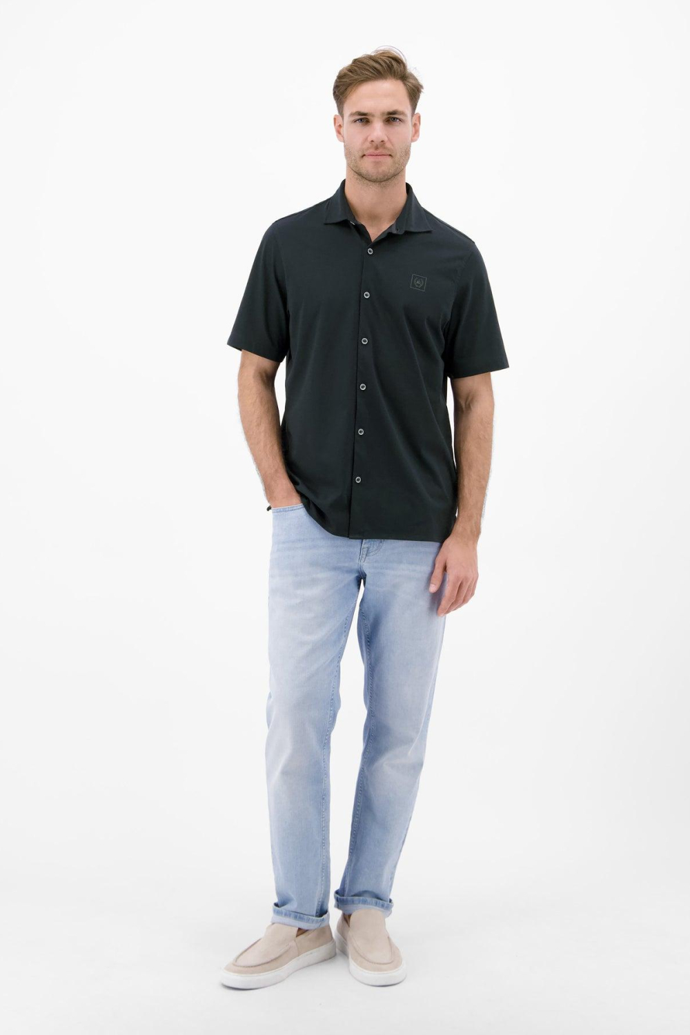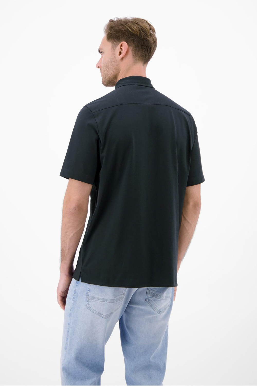 Dit zwarte overhemd van Lerros is een elegante aanvulling op je casual garderobe. Met zijn regular fit en korte mouwen biedt het de perfecte balans tussen stijl en comfort. Het overhemd is vervaardigd uit 75% BCI katoen en 25% polyester, wat zorgt voor een licht en ademend gevoel, ideaal voor het lente seizoen. De subtiele knoopsluiting en de klassieke puntkraag geven het een verfijnde uitstraling, perfect voor een relaxte dag op kantoor of een informele bijeenkomst. Dankzij het tijdloze zwart en het minimalistische ontwerp is dit Lerros overhemd eenvoudig te combineren met verschillende outfits. Draag het op een lichte jeans voor een casual look of style het met een nette pantalon voor een iets formelere gelegenheid. De normale lengte maakt het geschikt om zowel ingestopt als los te dragen. Of je nu een terras opzoekt of een dagje uit plant, dit overhemd biedt een veelzijdige keuze voor elke dag.