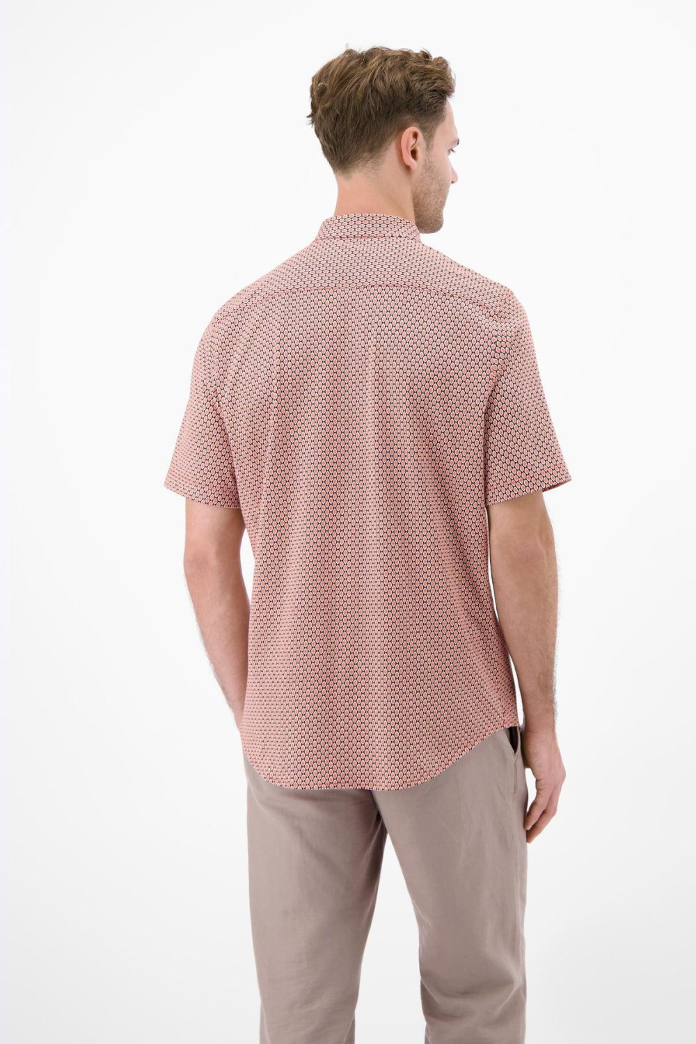 Dit casual overhemd van Lerros is een veelzijdige keuze voor de moderne man. Met zijn grafische patroon in warme tinten en een klassieke puntkraag, brengt het een subtiele stijl die zich moeiteloos aanpast aan iedere gelegenheid. Gemaakt van 100% BCI katoen, biedt het een comfortabele regular fit die zowel bij hogere als lagere temperaturen aangenaam aanvoelt. De korte mouwen geven een frisse look, perfect voor de lente of een zomerse dag. Dankzij de knoopsluiting en het tijdloze ontwerp is dit overhemd ideaal voor zowel informele als semi-formele situaties. Of je nu een gezellige middag met vrienden hebt of een casual dag op kantoor, dit overhemd zorgt ervoor dat je er altijd verzorgd uitziet. Het laat zich makkelijk combineren met een nette pantalon of een jeans voor een meer ontspannen uitstraling. De duurzame materialen maken het niet alleen een stijlvolle, maar ook een verantwoorde keuze.