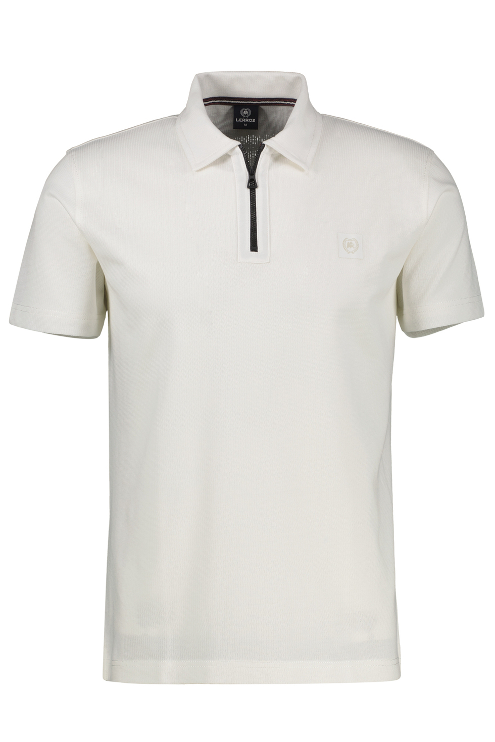 Polo van Lerros met korte mouwen. Dit item is voorzien van een puntkraag en heeft een korte ritssluiting aan de bovenkant. De polo heeft een allover gestructureerd patroon en het logo van Lerros op borsthoogte.