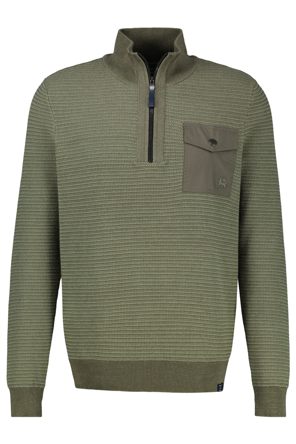 Deze Lerros trui in de kleur Nordic Olive is een uitstekende toevoeging aan je knitwear collectie. Gemaakt van 100% katoen, biedt deze trui een perfecte combinatie van comfort en stijl. De regular fit zorgt voor een ontspannen pasvorm en de hoogwaardige structuur geeft een visueel aantrekkelijke look. Met zijn high neck en ritssluiting houd je de kou makkelijk buiten, ideaal voor frisse dagen. Een opvallend detail is de borstzak met knoopsluiting, wat niet alleen praktisch is, maar ook een modern accent toevoegt aan de trui.