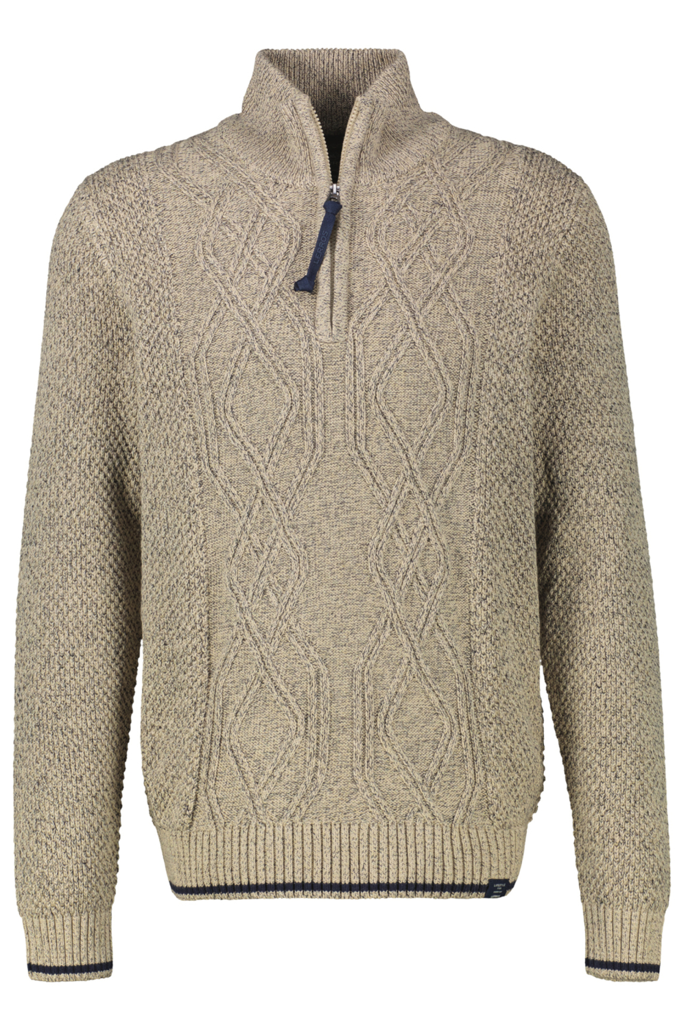 Deze herentrui van het merk Lerros combineert stijlvolle knitwear met praktisch comfort. Met een gemêleerd patroon en een high neck rits, biedt deze regular fit trui een eigentijdse uitstraling. De mix van 67% katoen en 33% acryl garandeert een aangename warmte en zachtheid, perfect voor koude winterdagen. Het verfijnde gebreide ontwerp zorgt voor een subtiele textuur, die zowel elegant als veelzijdig is. Deze trui past uitstekend in elke moderne herengarderobe en is gemakkelijk te combineren met diverse stijlen.