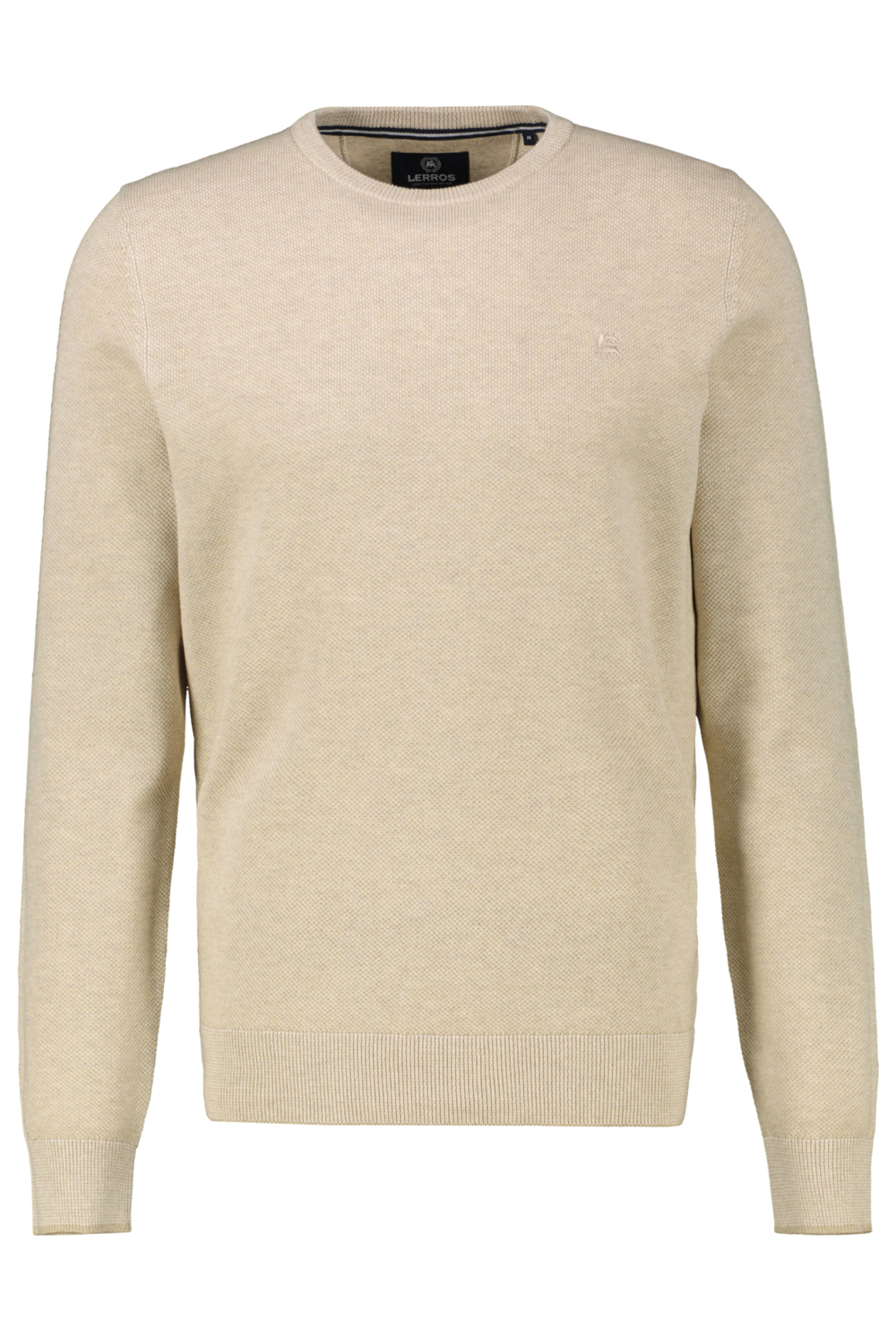 De Lerros trui voor heren is een stijlvolle keuze voor jouw dagelijkse casual outfits. Deze trui, uitgevoerd in een zachte beige tint, heeft een subtiele structuur die het geheel net dat beetje extra geeft. De trui is ontworpen met een regular fit, wat zorgt voor een comfortabele en ontspannen pasvorm. Met zijn ronde hals en lange mouwen is deze trui ideaal voor het basis seizoen en biedt hij je warmte op koelere dagen. Het gebruik van 100% katoen maakt de trui niet alleen comfortabel, maar ook ademend, wat perfect is voor alledaags gebruik. Dankzij de normale lengte kun je deze gemakkelijk combineren met een nette broek of een casual jeans voor verschillende gelegenheden. Of je nu een dag op kantoor hebt of een ontspannen weekend, deze Lerros trui voegt een vleugje verfijning toe aan je outfit zonder in te boeten op comfort.