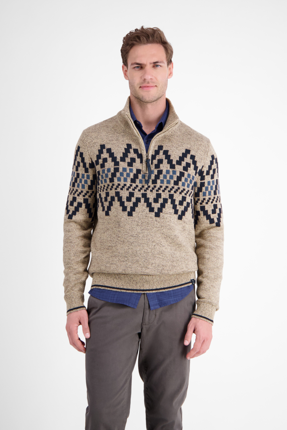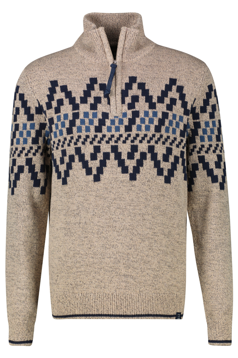 De Lerros trui is een gemêleerd knitwear exemplaar dat je warm houdt tijdens koude winterdagen. Met zijn hoogwaardige mix van 67% katoen en 33% acryl voelt deze trui comfortabel aan en biedt hij optimale bewegingsvrijheid. De regular fit zorgt voor een ontspannen pasvorm, terwijl de high neck met ritssluiting extra warmte en stijl toevoegt aan je outfit. Het opvallende patroon met geometrische vormen geeft de trui een moderne twist, ideaal voor zowel casual als iets nettere gelegenheden. Dankzij zijn veelzijdige design past de Lerros trui perfect bij diverse outfits. Combineer hem met een donkerblauwe jeans voor een relaxte look tijdens een weekendje weg of draag hem over een overhemd voor een iets formelere uitstraling op kantoor. De lange mouwen dragen bij aan een warme en knusse ervaring, waardoor deze trui een uitstekende keuze is voor koudere dagen.