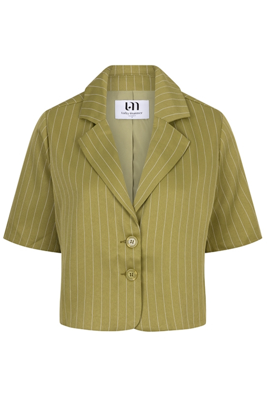 Blazer van Lofty Manner met korte mouwen en een reverse kraag. Deze blazer is voorzien van een knoopsluiting en heeft een allover krijtstreep.