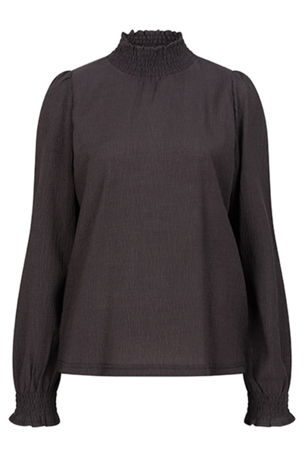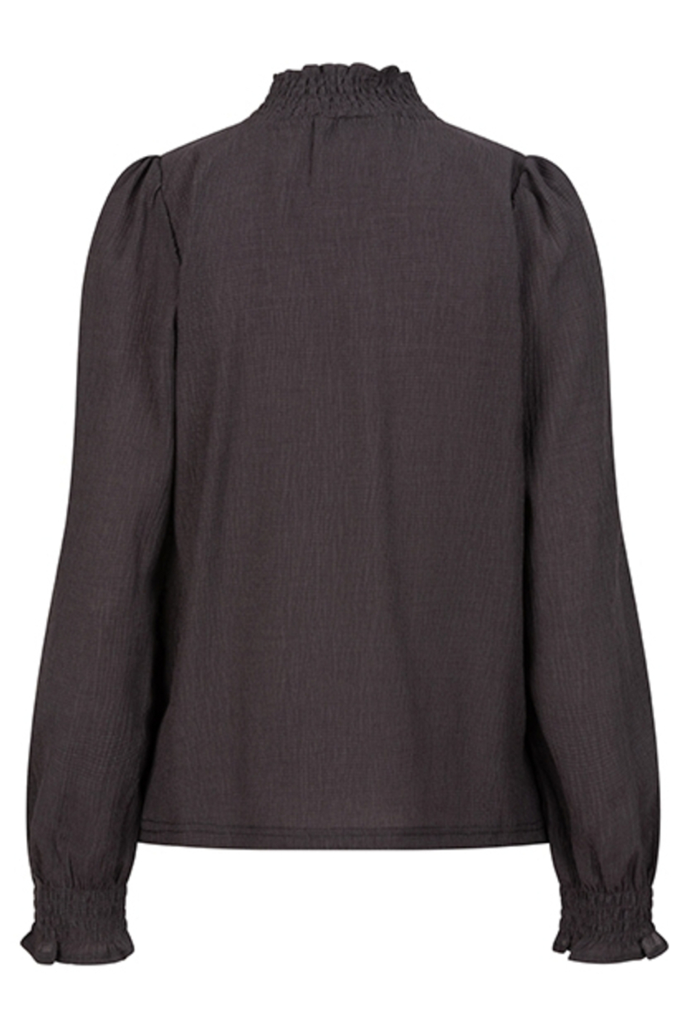 Deze grijze blouse van Lofty Manner is een elegante aanvulling op je garderobe. Met zijn gestructureerde patroon en hoge halslijn straalt de blouse een verfijnde maar casual uitstraling uit. De regular fit zorgt voor een comfortabele pasvorm, perfect voor diverse lichaamstypes. De lange mouwen met subtiele plooien bij de schouders en elastische afwerking bij de polsen geven het design een stijlvolle touch. Je kunt deze blouse eenvoudig stylen voor een winterse gelegenheid, of het nu een ontspannen weekendactiviteit of een informele werkdag betreft. De donkergrijze tint maakt deze blouse gemakkelijk te combineren met verschillende kleuren en stijlen, van een chique rok tot een stoere jeans. Ideaal voor een gezellige avond met vrienden of een dag op kantoor waar comfort en stijl samenkomen. Deze Lofty Manner blouse is veelzijdig en past moeiteloos in een winterse kledingcollectie. Of je nu kiest voor een vrouwelijk silhouet of een meer casual look, deze blouse zal zeker een favoriet worden.