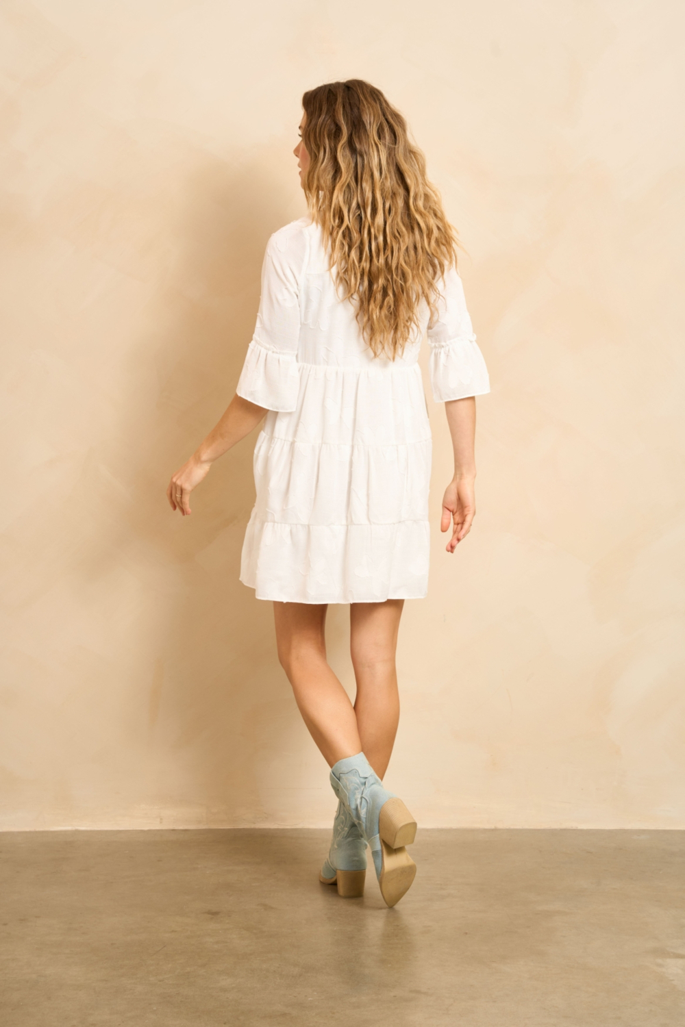 • Lofty Manner witte dames jurk | Model achteraanzicht