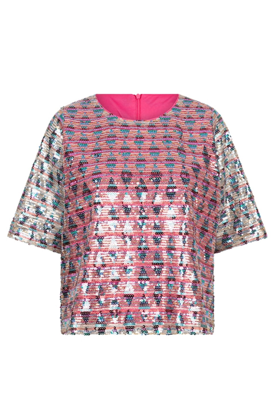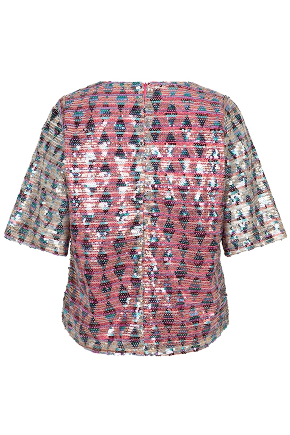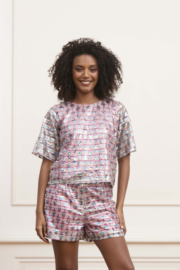 T shirt van Lofty Manner met korte mouwen en een ronde hals. Dit model heeft een allover patroon van pailletten.