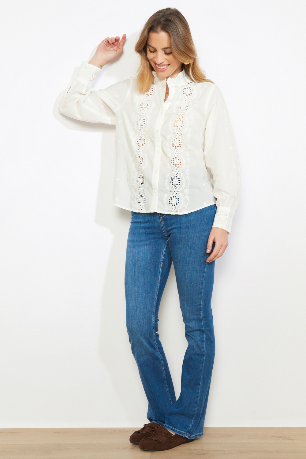 Deze elegant ontworpen LolaLiza blouse is een veelzijdige toevoeging aan je garderobe. Het regular fit silhouet, gecombineerd met de lange mouwen en een subtiele ronde hals, biedt een moderne en comfortabele uitstraling. Gemaakt van 100% katoen, is de blouse zacht en ademend, ideaal voor de lente. De kleur Optical White en het ajourpatroon geven een frisse en verfijnde touch die gemakkelijk te combineren is. Perfect voor zowel casual als iets formelere gelegenheden, deze blouse past goed bij een jeans of een nette broek voor een avondje uit of een dag op kantoor. De doorlopende knoopsluiting voegt elegantie toe, terwijl de fijne details op de mouwen een speelse twist geven aan het geheel. Of je nu naar een meeting gaat of geniet van een ontspannen lunch, met deze LolaLiza blouse ben je altijd stijlvol gekleed.