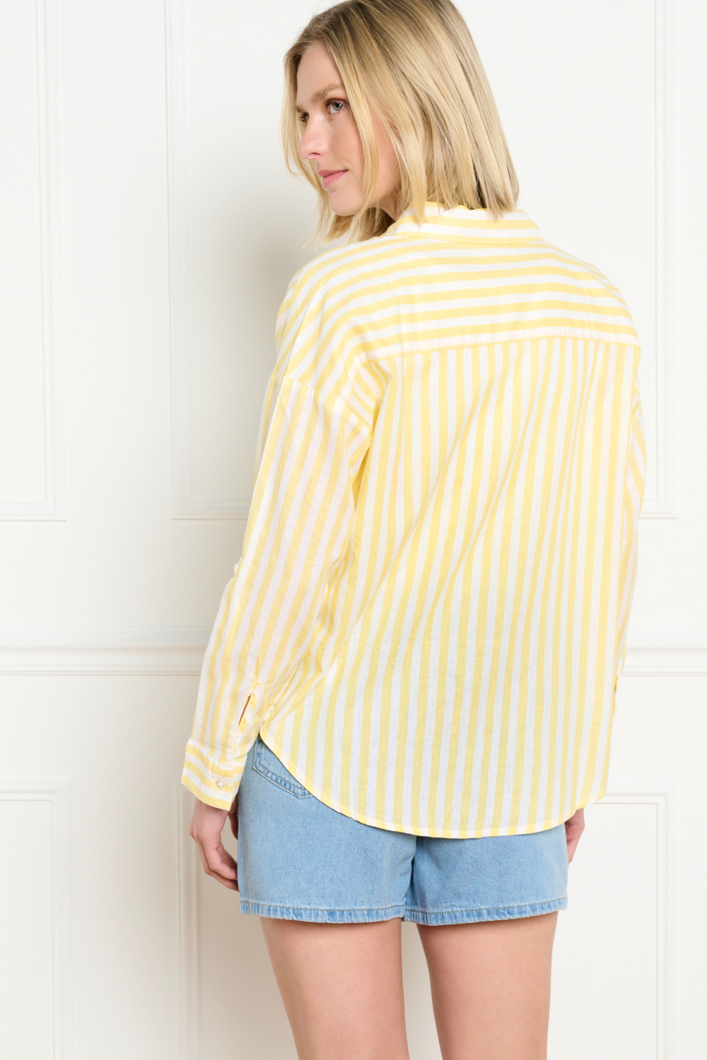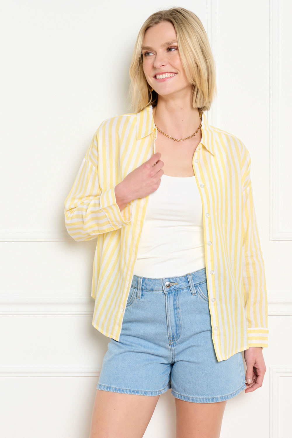 Deze ontspannen en stijlvolle gestreepte blouse van LolaLiza is een veelzijdige aanvulling op jouw garderobe. Het luchtige ontwerp is gemaakt van een mix van 55% linnen en 45% viscose, wat zorgt voor een comfortabel gevoel. De gele en witte strepen geven de blouse een frisse uitstraling, ideaal voor de lente. Met een regular fit en lange mouwen blijft de pasvorm zowel tijdloos als eigentijds. De puntkraag en knoopsluiting voegen een klassieke touch toe aan deze casual blouse. Door de lichte en ademende stof is deze LolaLiza blouse perfect voor dagelijkse bezigheden. Combineer hem met een jeans voor een informele setting of draag hem over een top bij zonniger weer voor een gelaagd effect. Deze blouse is ideaal voor een brunch met vrienden, een relaxte werkdag of een wandeling in het park. Met zijn normale lengte past hij goed bij verschillende outfits, waardoor je eenvoudig kunt variëren en aan je persoonlijke stijl kunt aanpassen.