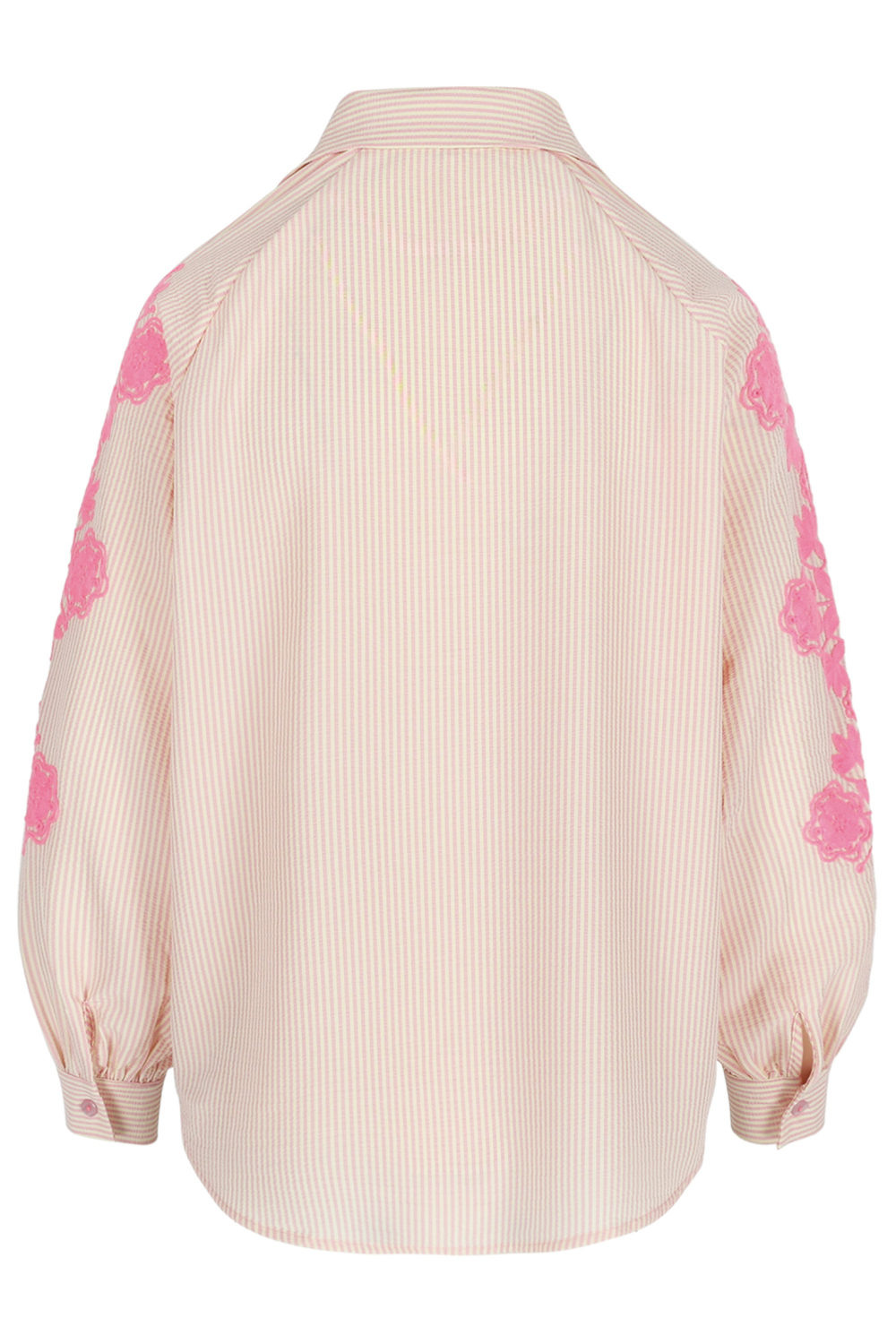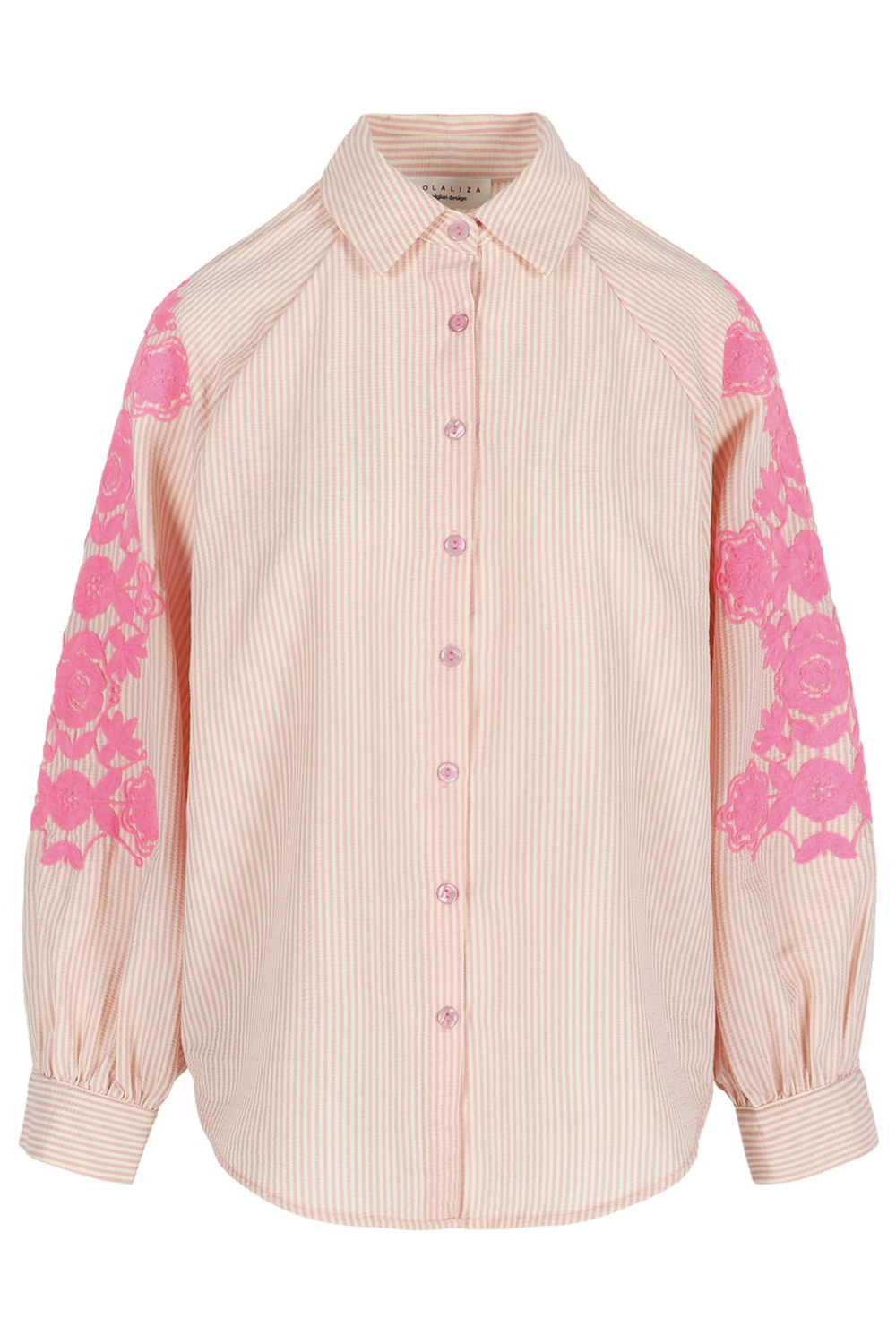 Deze casual blouse van LolaLiza past perfect in je lentegarderobe. De blouse is vervaardigd uit een subtiele mix van 85% polyester, 10% katoen en 5% elastaan, wat zorgt voor een comfortabele pasvorm die heerlijk aanvoelt. Met zijn lichtroze streeppatroon en elegante puntkraag straalt dit kledingstuk een zomerse charme uit. De unieke roze bloemenapplicaties op de mouwen geven deze regular fit blouse een kleurrijke en vrouwelijke touch. Dankzij het veelzijdige ontwerp kun je deze blouses makkelijk combineren voor verschillende gelegenheden. De blouse is ideaal voor zowel een relaxte dag uit als een informele werksfeer. De lange mouwen maken het een geschikte keuze voor koelere lentedagen. Draag het met een comfortabele jeans en sneakers voor een casual look, of combineer het met een nette rok voor een meer verfijnde uitstraling. Dit kledingstuk biedt zowel stijl als flexibiliteit in tal van settings.