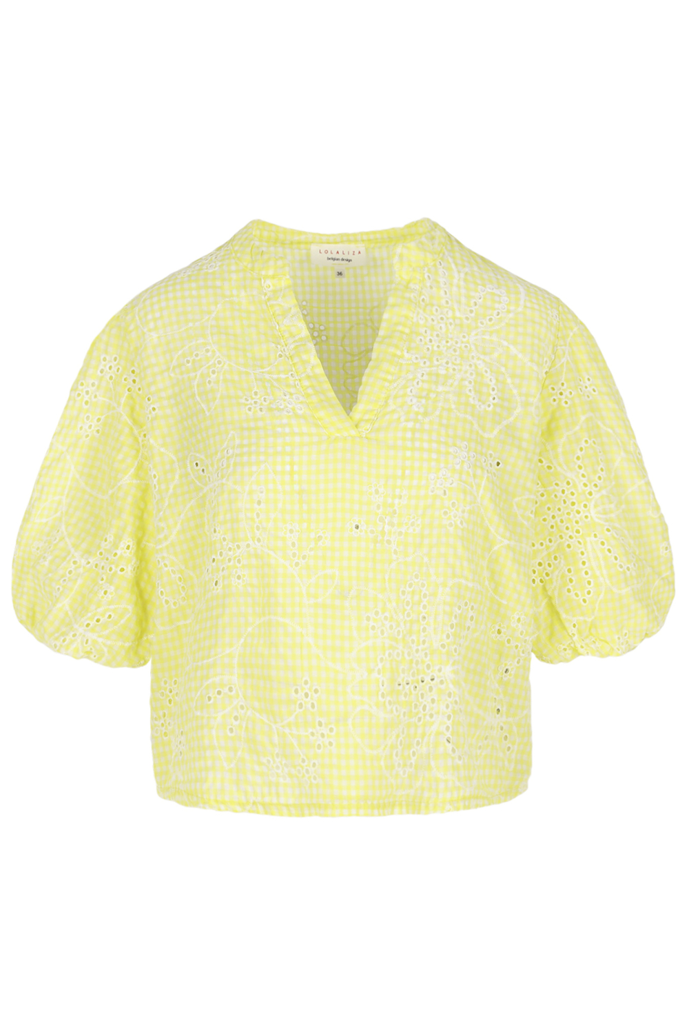 Deze casual LolaLiza blouse is een kleurrijke toevoeging aan je zomergarderobe. Met een vrolijk gele tint en een subtiel geblokt patroon valt het direct op. De 3/4 mouwlengte en de luchtige V-hals maken het ideaal voor de warmere dagen. De blouse is vervaardigd uit 100% polyester, wat zorgt voor een lichte en ademende stof, perfect voor als de temperaturen stijgen. Daarnaast biedt de regular fit een comfortabele pasvorm die bij verschillende lichaamstypes past. De gebloemde details in de stof geven de blouse een speelse uitstraling, waardoor het een uitstekende keuze is voor een dagje uit of een casual bijeenkomst. Deze blouse kun je gemakkelijk combineren met een lichte broek of rok voor een stijlvolle en ontspannen outfit. Of je nu op een zomerse picknick bent of een informele lunchafspraak hebt, deze LolaLiza blouse is veelzijdig en kan moeiteloos je look opfrissen.