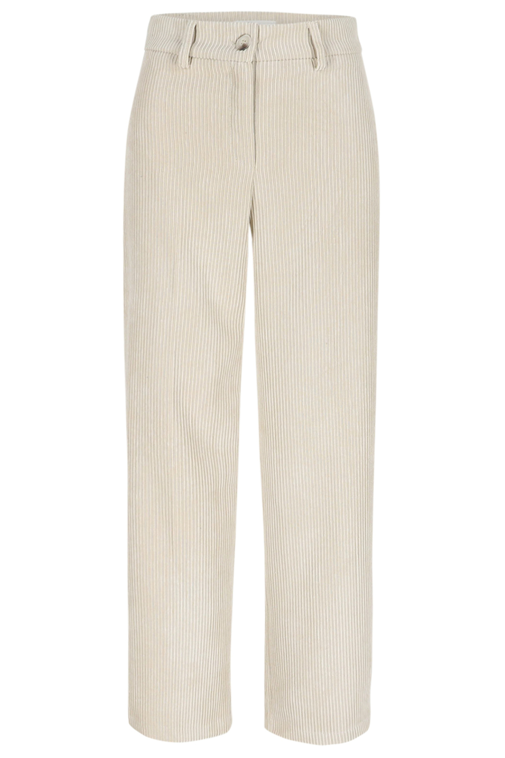 Met de LolaLiza beige ribbroek voeg je een stijlvolle en casual touch toe aan je garderobe. Deze damesbroek heeft een regular fit en is ideaal voor de herfst. De subtiele ribstructuur en de zachte, warme beige kleur maken het een veelzijdig kledingstuk dat moeiteloos te combineren is met zowel casual truien als nette tops. De broek beschikt over praktische steekzakken, terwijl de knoop- en ritssluiting zorgen voor een comfortabele pasvorm.