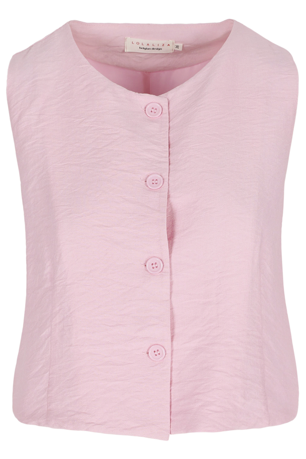 Dit stijlvolle roze gilet van LolaLiza is een veelzijdig item dat perfect is voor de zomerse dagen. Het gilet heeft een ronde hals en een knoopsluiting voor een casual en toch verfijnde uitstraling. De regular fit zorgt voor een comfortabele pasvorm, terwijl de structuur van de stof een subtiel patroon toevoegt. Gemaakt van 85% viscose en 15% polyamide, biedt het materiaal een lichte en ademende basis die geschikt is voor warme dagen. Het gilet is mouwloos en heeft een normale lengte, waardoor het gemakkelijk te combineren is met verschillende outfits. Of je nu een wandeling langs het strand maakt of een middagje gaat lunchen met vrienden, dit gilet is een passende keuze. Draag het met een luchtige broek of een rok voor een moeiteloos elegante look. Met zijn zachte voering van polyester zorgt dit LolaLiza gilet voor zowel stijl als comfort.