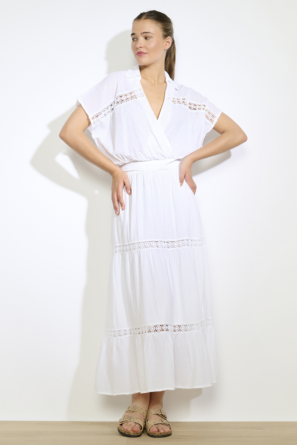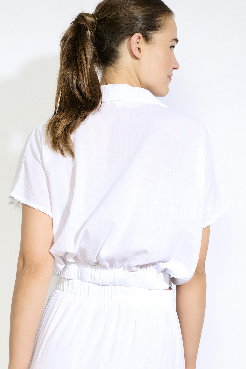 Deze stijlvolle damesblouse van LolaLiza in 1019 Optical White is een echte aanwinst voor je zomergarderobe. De blouse heeft een regular fit en is gemaakt van 100% katoen, wat zorgt voor een luchtig en comfortabel draagcomfort. De overslaghalslijn biedt een elegante touch, terwijl de korte mouwen een casual uitstraling geven. De ajourdetails langs de schouders voegen extra verfijning toe en maken het geheel speels en chic. Met het tijdloze ontwerp en de subtiele details is deze blouse perfect voor diverse gelegenheden. Of je nu een dagje naar het strand plant of een casual lunchafspraak hebt, deze blouse past altijd. Combineer hem met een hoge taille rok voor een elegante look of draag hem met een jeans voor een meer relaxte stijl. Deze blouse van LolaLiza is de ideale keuze als je op zoek bent naar een veelzijdig en stijlvol kledingstuk voor de zonnige dagen.
