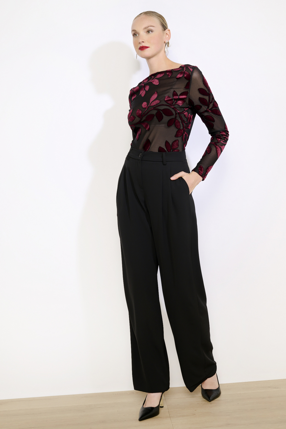 Dit elegante zwarte dames T-shirt van LolaLiza is de perfecte keuze voor de winter. Het T-shirt heeft een regular fit pasvorm en een ronde hals, waardoor hij comfortabel draagt en een veelzijdige uitstraling heeft. De subtiele bloemenpatroon in bordeauxrode tinten voegt een vleugje flair toe aan je casual look. De lange mouwen maken dit T-shirt ideaal voor koudere dagen, terwijl de normale lengte zorgt voor een klassieke en tijdloze stijl. Dit T-shirt past naadloos in elke casual setting, of je nu een dagje uit gaat met vrienden of een informele bijeenkomst hebt. De stof voelt zacht aan en biedt een prettig draagcomfort tijdens elk avontuur. Combineer het met een donkere jeans of een nette broek voor een complete look die zowel stijlvol als comfortabel is. In dit LolaLiza T-shirt straal je zelfvertrouwen uit en voel je je altijd op je gemak.