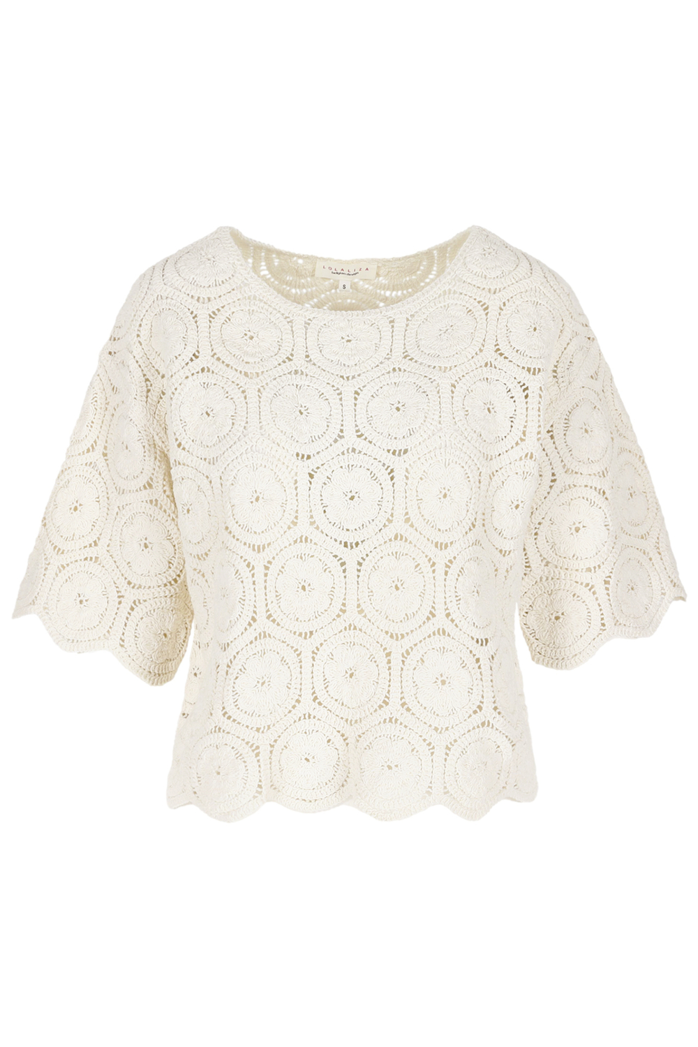 Deze verfijnde trui van LolaLiza is een prachtige keuze voor jouw zomergarderobe. Gemaakt van 100% katoen, biedt de stof een heerlijk ademend en comfortabel gevoel. De trui heeft een klassieke ronde hals en een regular fit, waardoor hij gemakkelijk te matchen is met verschillende stijlen. Het opvallende patroon met zijn ronde structuren geeft deze trui een unieke en stijlvolle uitstraling die zeker in het oog springt. De 3/4 mouwlengte maakt de trui perfect voor de wat warmere dagen, of het nu gaat om een informele bijeenkomst of een ontspannen dagje uit. De lichte kleur maakt het eenvoudig om te combineren met zowel casual als meer formele outfits. Draag hem met een elegante pantalon voor een chique look, of ga voor een relaxte uitstraling met een spijkerbroek. Deze LolaLiza trui is een veelzijdige aanvulling die vele seizoenen meegaat.