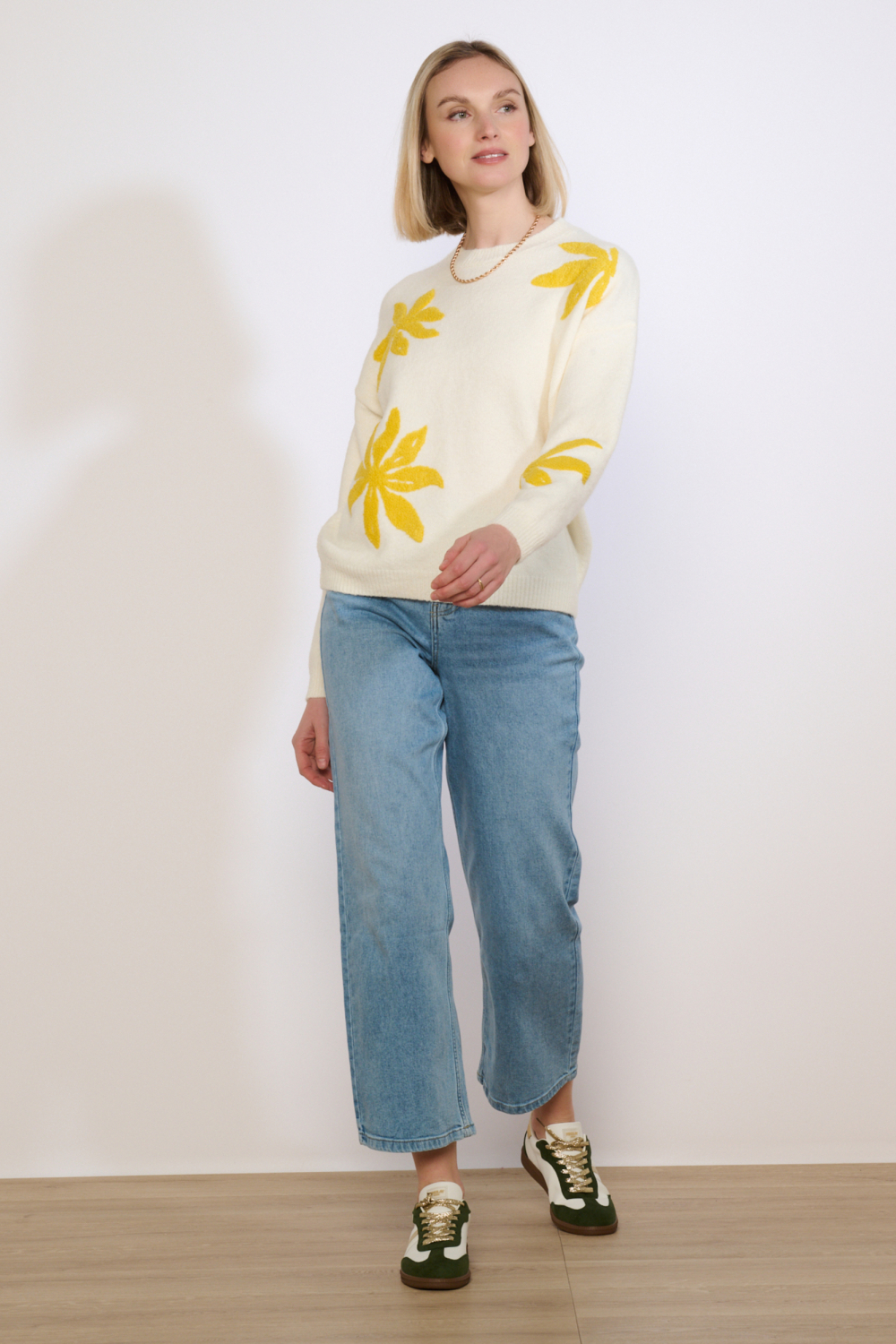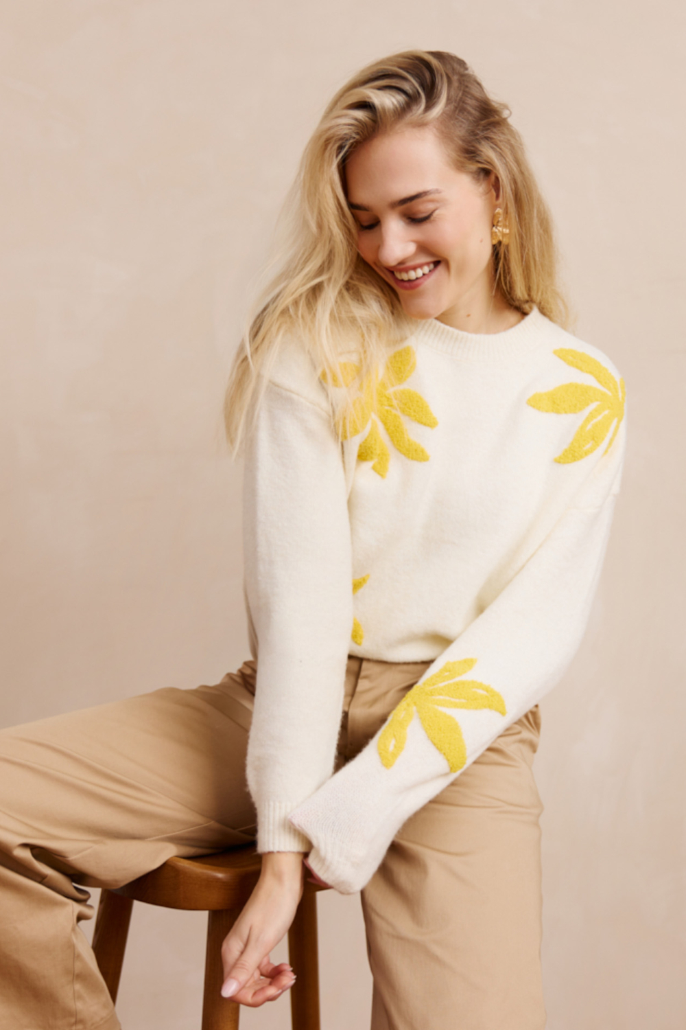 Deze casual trui van LolaLiza is een stijlvolle toevoeging aan jouw kledingcollectie. Met zijn delicate bloemenpatroon in vrolijke gele tinten op een zachte, crème achtergrond, biedt het een frisse uitstraling die perfect past bij het voorjaar. Dankzij de materialencombinatie van polyester, acryl, wol en elastan, zit de trui comfortabel en voelt hij zacht aan op de huid. De regular fit en de ronde hals maken het een veelzijdig kledingstuk dat je makkelijk kunt combineren met zowel een jeans als een chique pantalon. De lange mouwen en normale lengte van deze trui maken hem geschikt voor uiteenlopende gelegenheden. Of je nu een dagje gaat shoppen of een lunchafspraak hebt, met deze LolaLiza trui zie je er altijd verzorgd uit. De subtiele bloemenprint geeft een speels element aan je outfit, zonder overweldigend te zijn. Ideaal voor een casual look, maar ook prima te dragen in een informele werkomgeving. Voeg een vleugje vrolijkheid toe aan je dag met deze veelzijdige trui.
