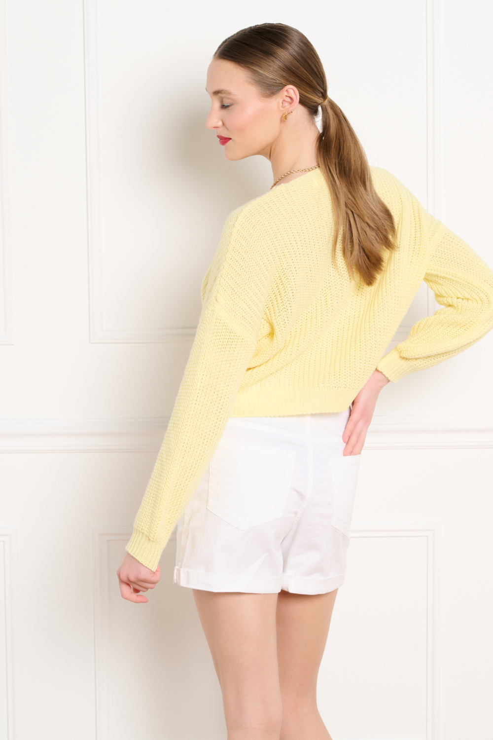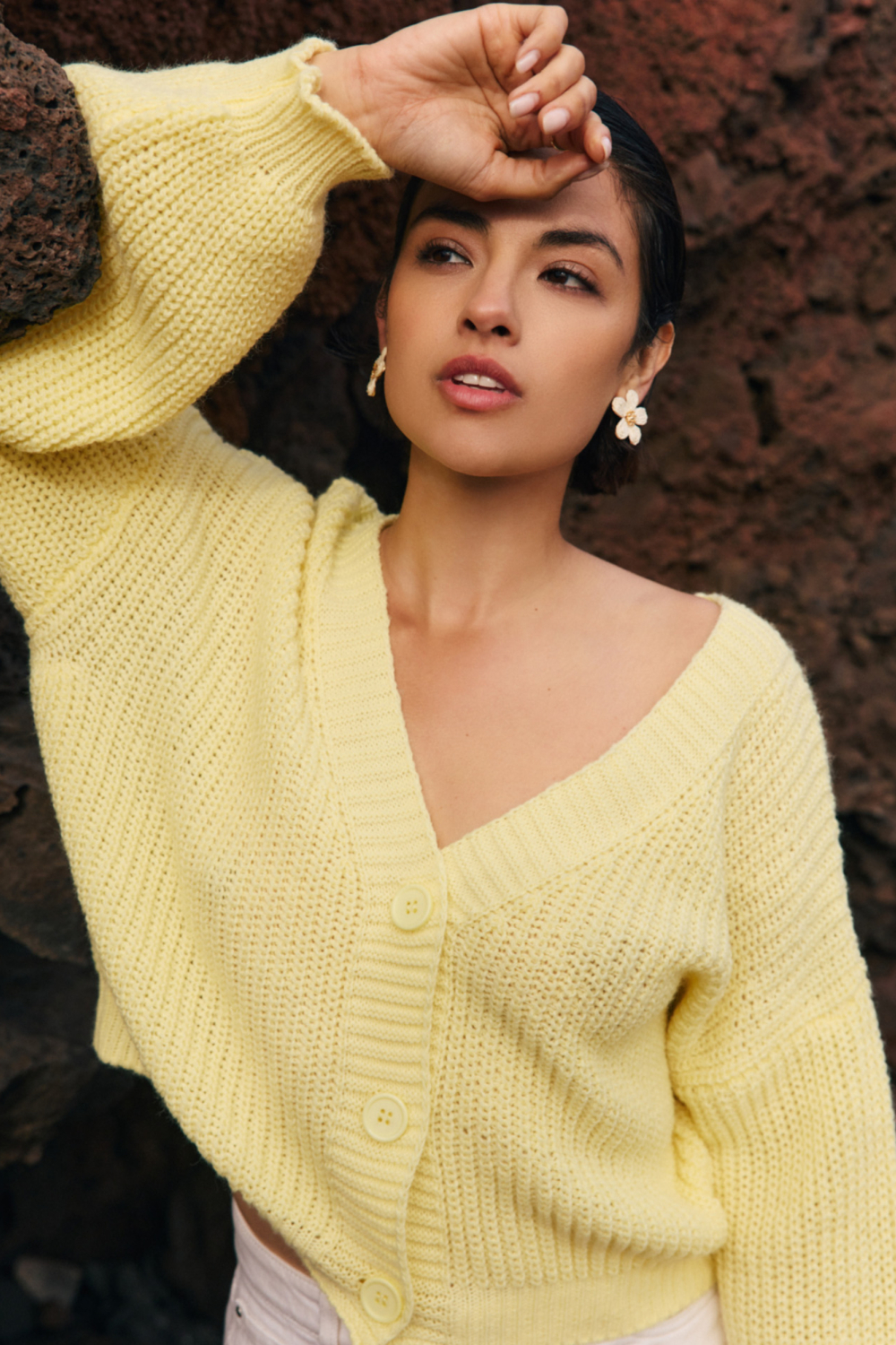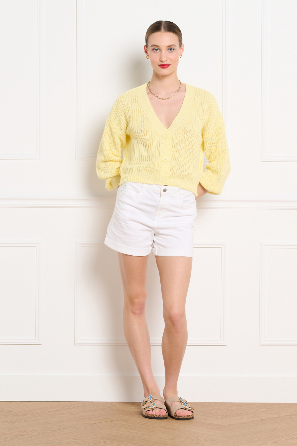 Dit LolaLiza vest is de perfecte aanvulling voor je zomergarderobe. Gemaakt van 100% acryl, biedt dit lichte, gele knitwear vest een comfortabele en ademende ervaring, ideaal voor warmere dagen. De regular pasvorm samen met de lange mouwen zorgt voor een ontspannen maar stijlvolle uitstraling. De charmante V-halslijn benadrukt subtiel je silhouet, en de knoopsluiting voegt een klassiek tintje toe aan het geheel. Met zijn frisse, zonnige kleur is dit vest veelzijdig en eenvoudig te combineren. Of je nu een ontspannen dag doorbrengt in de stad of een meer casual look wilt creëren voor een lunchafspraak, dit korte vest past perfect bij elke gelegenheid. Draag het met een lichte broek of een zomerse rok voor een moeiteloze, modieuze look. Het subtiele breipatroon en de zachte tint maken dit vest tot een must voor elke vrouwelijke garderobe.