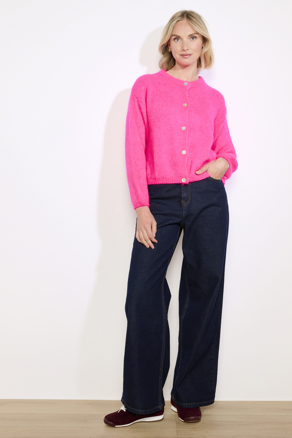 Dit opvallende vest van LolaLiza in de kleur Fluo Pink is een kleurrijke toevoeging aan je wintergarderobe. Het vest heeft een regular fit en is ontworpen voor dames. De charmante ronde hals en de knoopsluiting voegen een elegant detail toe aan het geheel, terwijl de zachte wolmix voor een comfortabel knus gevoel zorgt. De heldere, fluo roze tint maakt dit vest een echte blikvanger, perfect om wat kleur toe te voegen aan grijze winterdagen. Het LolaLiza vest is veelzijdig te combineren. Dankzij de normale lengte en lange mouwen is het ideaal voor zowel casual als iets formelere gelegenheden. Draag het bijvoorbeeld over een blouse naar kantoor, of combineer het met je favoriete jeans voor een ontspannen weekendlook. Met zijn knitwear design brengt dit vest niet alleen warmte, maar ook stijl naar je outfit.
