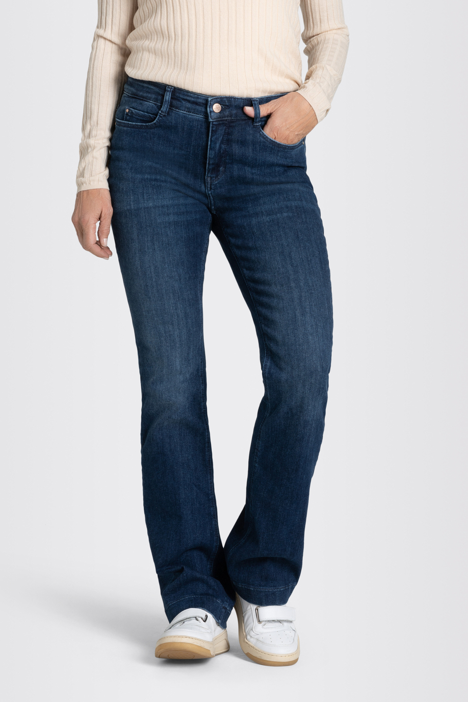 Bootcut jeans van Mac met rinse wassing. Dit 5-pocket model is voorzien van een regular taille. De jeans sluit met een knoop,- rits combinatie. Je kunt deze jeans een maatje kleiner dragen.