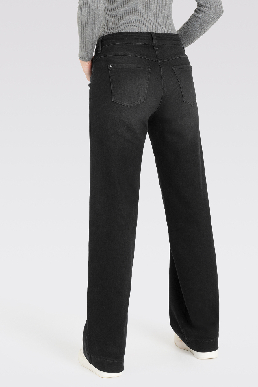 De Mac Wide Leg Jeans Commercial Black is een stijlvolle toevoeging aan je herfstgarderobe. Gemaakt van een fijne denim blend van 90% katoen, biedt deze jeans comfort en een moderne uitstraling. De stonewash wassing geeft de jeans een subtiel verweerd uiterlijk, perfect voor een casual maar chique look. Met de combinatie van een high waist en een wide leg pasvorm, krijgt jouw silhouet een elegante vorm, ideaal te dragen met een ingetogen top of een knusse sweater. De praktische 5-pocket stijl en de knoop-sluiting met rits zorgen niet alleen voor een klassieke look, maar ook voor functioneel gemak. Draag deze veelzijdige jeans naar een informele lunch of een ontspannen dagje uit. De strakke afwerking en de diepe commerciële zwarte kleur maken het combineren met verschillende stijlen eenvoudig. Of je nu gaat voor nonchalant of iets meer dressed-up, deze Mac jeans is een betrouwbare optie voor iedere gelegenheid in het seizoen. Meer informatie: Je kunt deze jeans een maatje kleiner dragen.