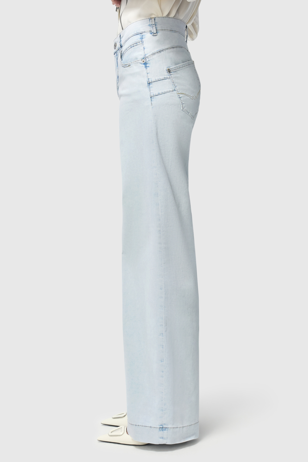 Deze jeans van Mac combineert stijl en comfort, ideaal voor de wintermaanden. Met een tijdloze denim look en een wide leg ontwerp, biedt deze jeans een moderne en ontspannen uitstraling. Het model heeft een regular waist, wat zorgt voor een comfortabele pasvorm. De broek is voorzien van een 5-pocket ontwerp en een klassieke knoop- en ritssluiting, waardoor je voldoende ruimte hebt voor kleine essentials. Gemaakt van een mix van 89% katoen, 8% polyester en 3% elastaan, biedt deze damesjeans zowel flexibiliteit als stevigheid. De zachte, lichtblauwe wassing voegt een frisse touch toe aan je dagelijkse outfit. Combineer deze jeans met een eenvoudige top voor een casual look, of kleed het op met een blouse voor een avondje uit. Of je nu een dagje gaat shoppen of afspreekt met vrienden, deze Mac jeans is een veelzijdige aanvulling op je garderobe.