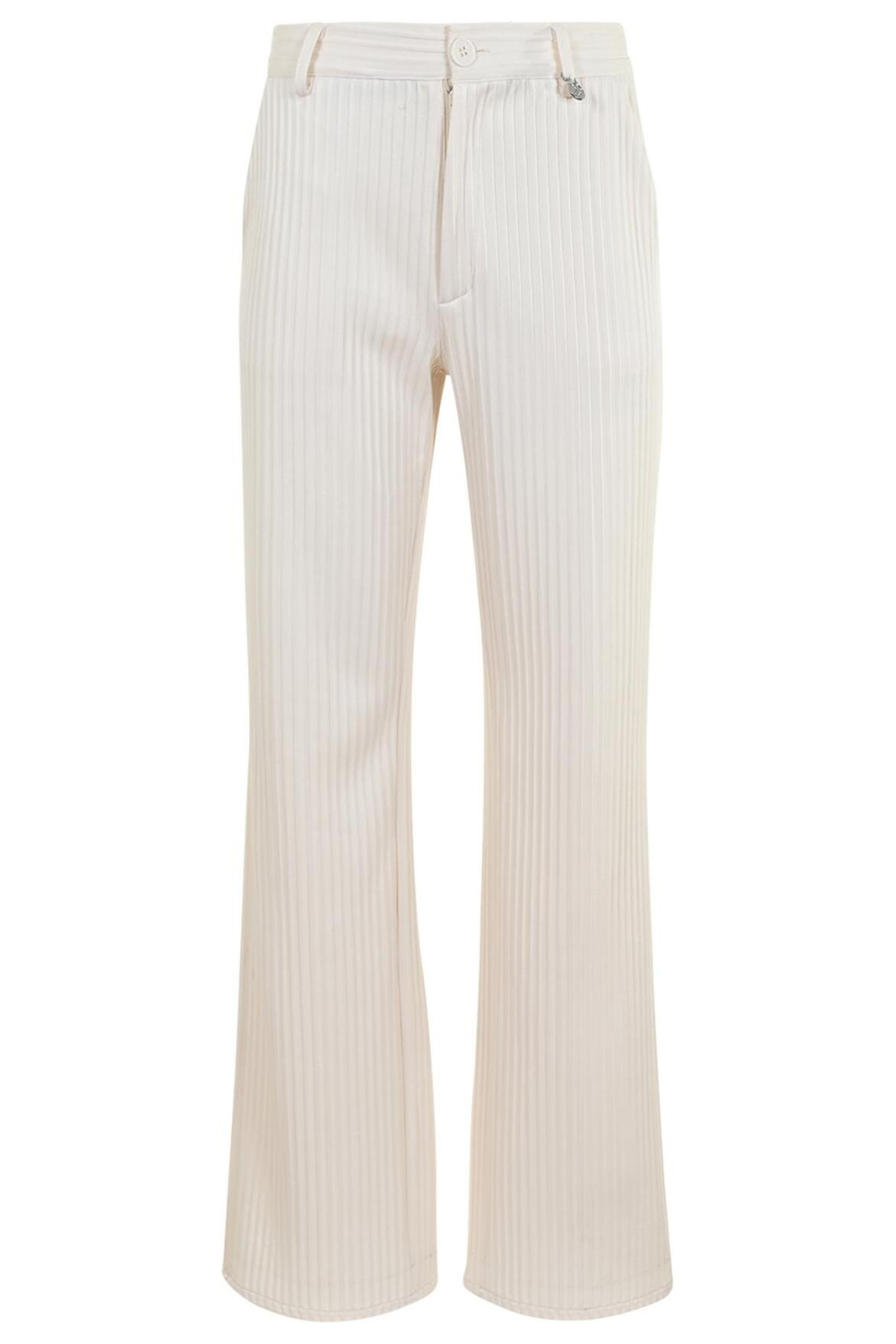 Deze stijlvolle off-white broek van Maicazz biedt een comfortabele en chique look voor de herfst. Met een high waist pasvorm en wijde pijpen is deze broek ideaal voor casual gelegenheden. De subtiele structuur in de stof en de steekzakken voegen een vleugje verfijning toe aan je dagelijkse outfit. Gemaakt van 93% polyester en 7% elastan, biedt de stof net dat beetje stretch voor extra comfort en bewegingsvrijheid. Deze Maicazz broek is een veelzijdige keuze die eenvoudig te combineren is met diverse stijlen. Perfect voor een dag op kantoor, maar ook geschikt voor meer ontspannen settings zoals een lunch met vrienden. De knoop- en ritssluiting zorgt voor een nette afwerking, terwijl de normale lengte hem ideaal maakt om te dragen met zowel sneakers als hakken. Voeg deze broek toe aan je garderobe voor een tijdloze en functionele look.