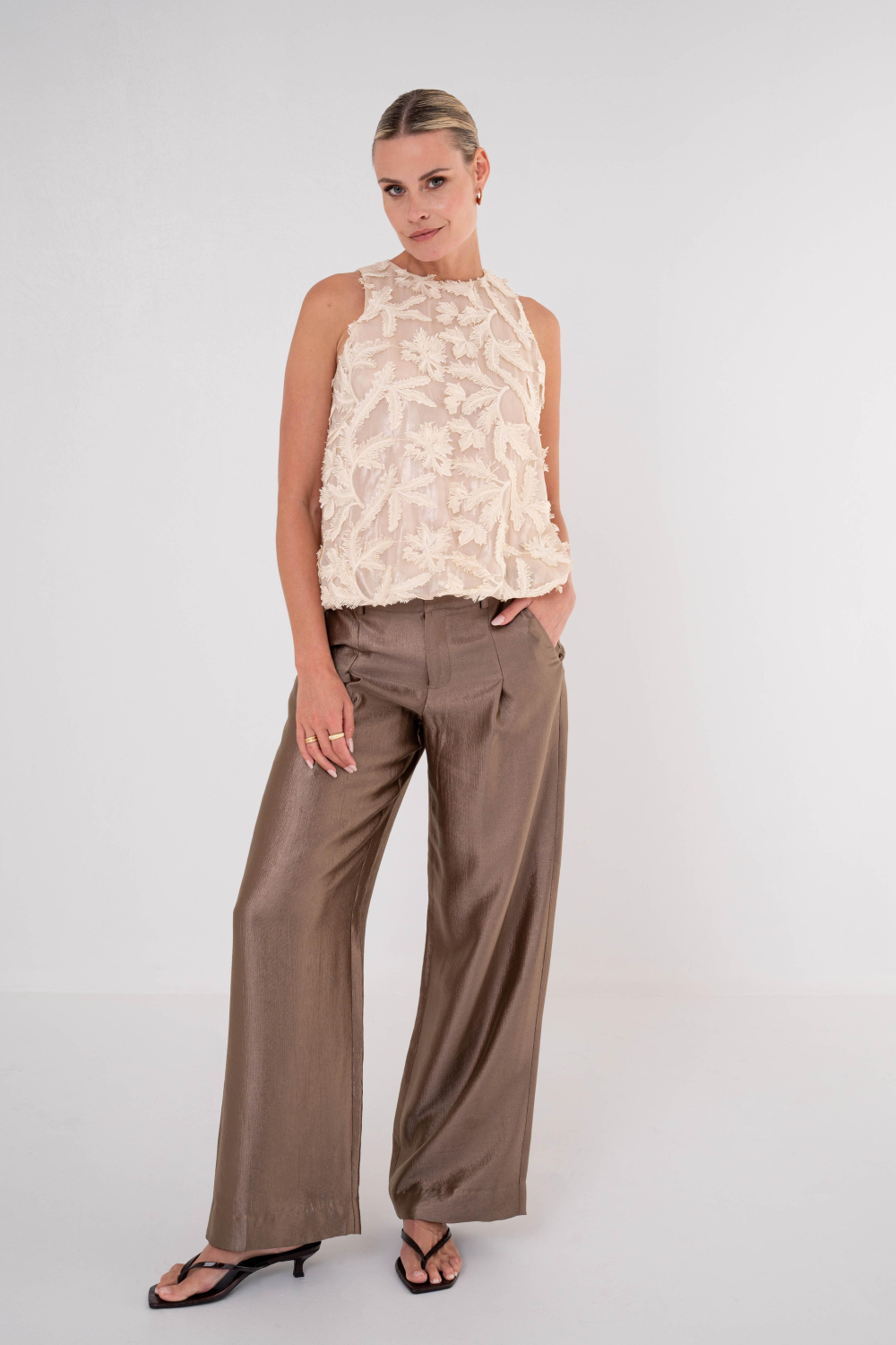 Deze chique top van Maicazz valt direct op door het verfijnde ontwerp en het gebruik van hoogwaardige materialen. Gemaakt van 100% polyester, is de top uitgevoerd in een prachtige lichte zandtint die naadloos aansluit bij elk zomers palet. De structuur in het patroon geeft een speelse en verfijnde uitstraling, terwijl de ronde hals en de mouwloze uitvoering zorgen voor een elegante look. Met het strikkoord aan de achterkant voeg je een subtiel detail toe dat het geheel afmaakt. De Maicazz top biedt veelzijdigheid voor verschillende gelegenheden. Voor een zakelijke lunch combineer je deze eenvoudig met een nette pantalon en blazer. Voor een avondje uit is een combinatie met een stijlvolle rok of jeans een uitstekende keuze. Door de normale lengte valt de top mooi over de heupen en zorgt de regular fit pasvorm voor een comfortabele en flatterende uitstraling. Voeg een paar opvallende oorbellen toe en je bent klaar voor elke gelegenheid.