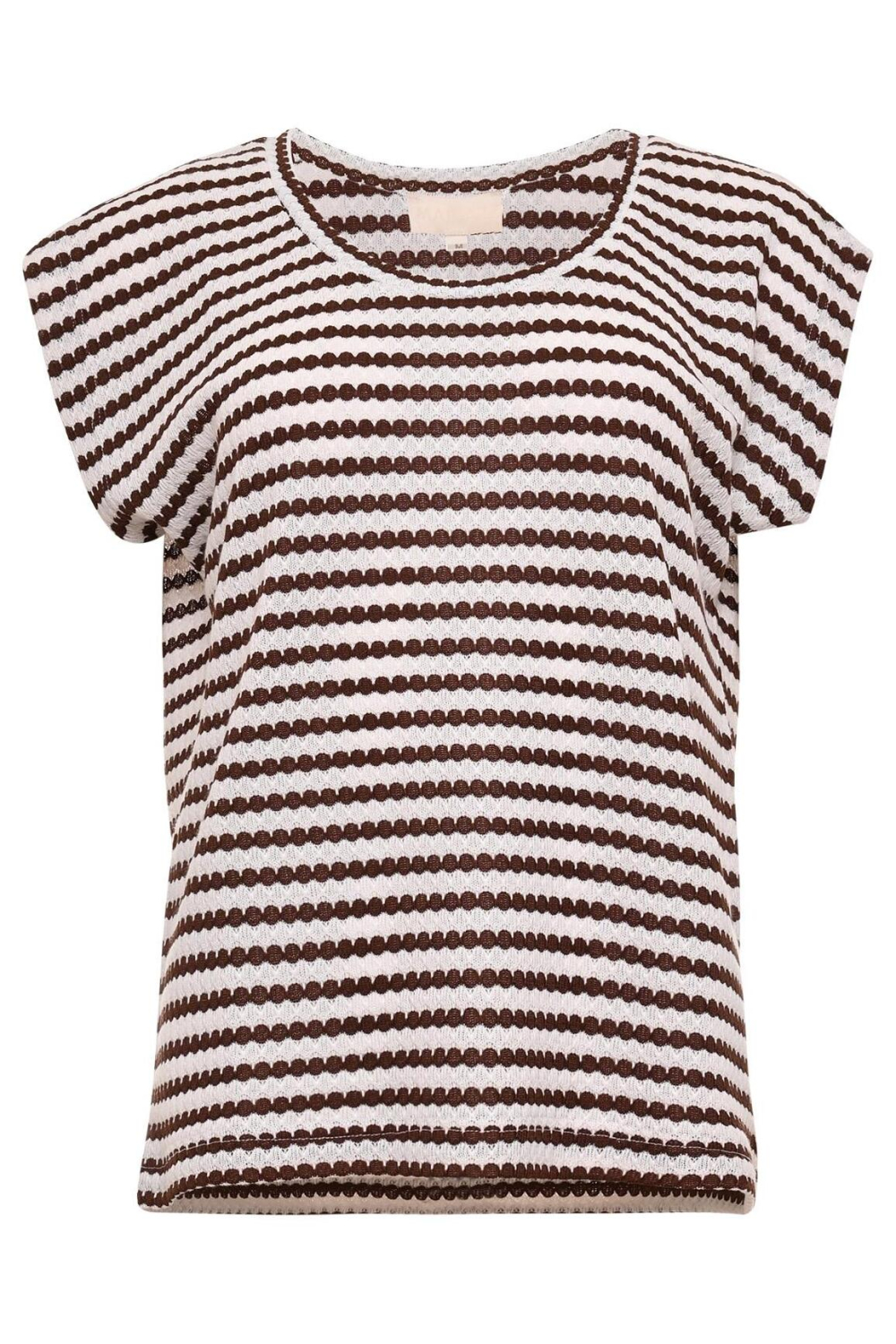 Deze Maicazz zomerse knitwear top is ideaal voor jouw garderobe. De top heeft een opvallend gestreept patroon in warme tinten, perfect voor de zomerse dagen. Met een regular fit en een ronde hals biedt deze top een klassieke uitstraling zonder aan comfort in te boeten. De kapmouwen geven een speelse twist en zorgen voor een luchtige pasvorm. Dankzij de mix van 95% polyester en 5% elastan, voelt de stof aangenaam licht aan en beweegt hij soepel met je mee. Geef je dagelijkse look een stijlvolle touch met deze veelzijdige Maicazz top. Of je nu een middag op het terras doorbrengt of een informele werkdag hebt, deze top past moeiteloos bij diverse outfits. Combineer hem met een donkere pantalon voor een chique uitstraling of met een lichte jeans voor een casual look. De normale lengte maakt het combineren gemakkelijk, waardoor het een toegankelijke keuze is voor elke gelegenheid.