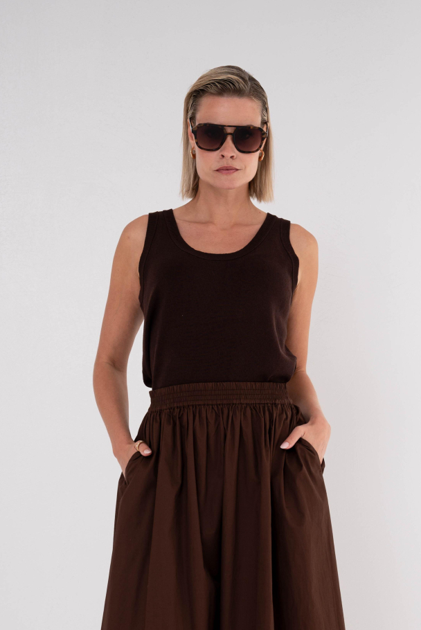 Deze chique knitwear top van Maicazz in de kleur Choco is een veelzijdige toevoeging aan je zomergarderobe. Met een relaxed fit en een ronde hals biedt deze top ultiem comfort en stijl. Gemaakt van 89% viscose en 11% polyamide, voelt de stof zacht en licht aan, ideaal voor warme zomerdagen. Het mouwloze ontwerp zorgt voor een luchtige uitstraling die perfect is voor zowel casual als meer geklede gelegenheden. Combineer deze Maicazz top moeiteloos met een zwierige rok of een strakke jeans voor een moderne look. De normale lengte zorgt ervoor dat je de top zowel in als over je kleding kunt dragen, afhankelijk van je voorkeur. Of je nu naar een gezellig tuinfeest gaat of een ontspannen dag aan het strand hebt gepland, deze top is een stijlvolle keuze die je veelzijdig kunt inzetten. De subtiele choco kleur biedt een elegante touch die bij verschillende huidtinten en stijlen past.