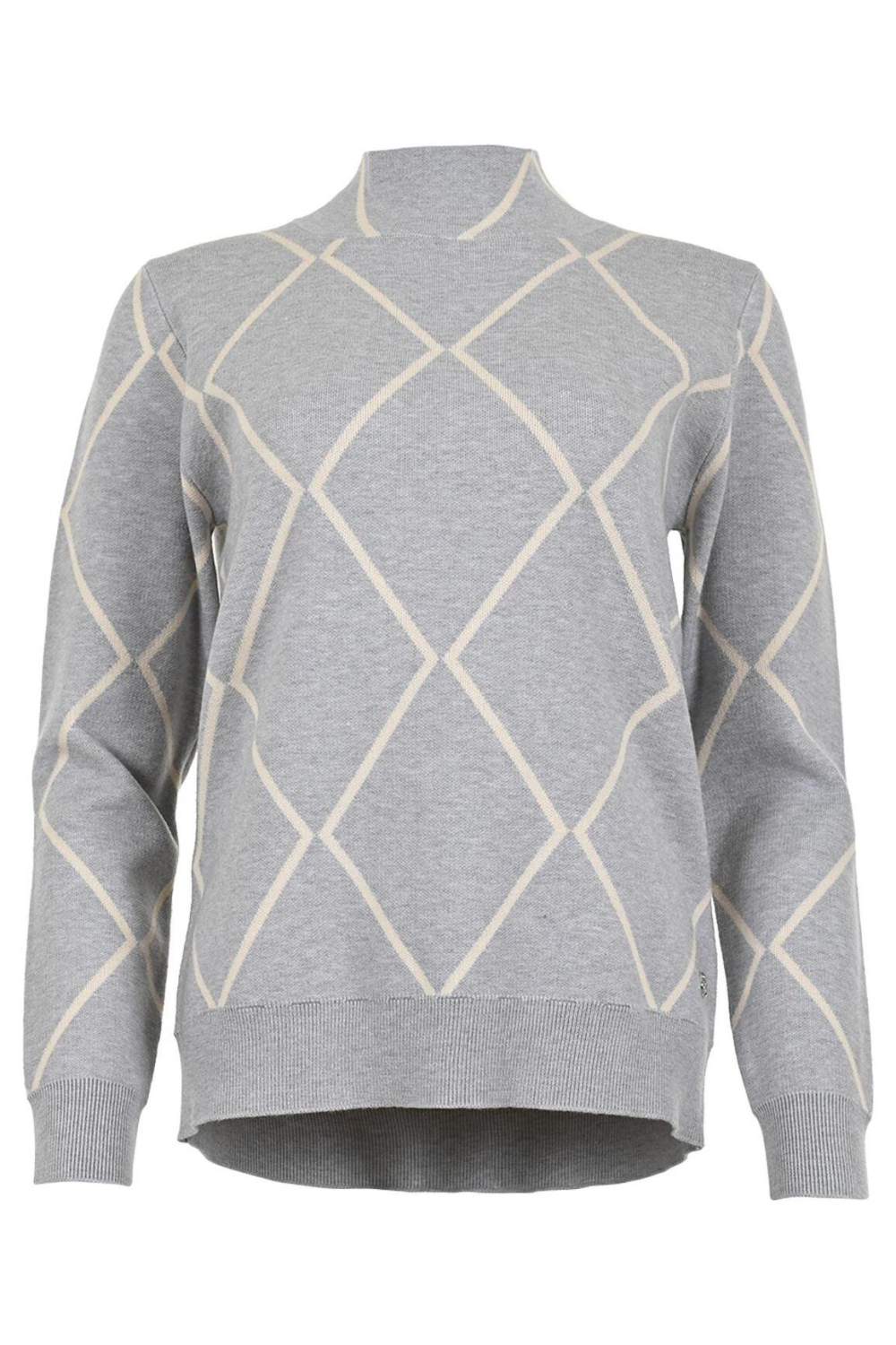 De Maicazz trui voor dames in grijs combineert stijl en comfort in een prachtig knitwear ontwerp. Gemaakt van een hoogwaardige mix van viscose, polyester en polyamide, biedt deze trui een zachte en warme textuur die ideaal is voor de koude wintermaanden. De trui heeft een opvallend ruitpatroon dat een speelse maar verfijnde look toevoegt. Met een high neck design en regular fit pasvorm, is deze trui perfect voor zowel casual als meer geklede outfits.