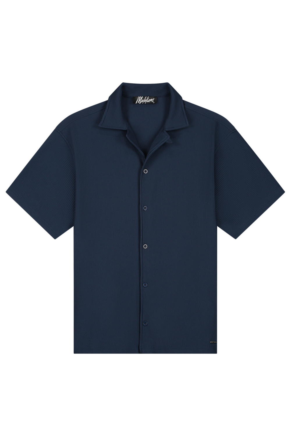 Dit casual navy overhemd van Malelions biedt een stijlvolle aanvulling voor je dagelijkse garderobe. Het regular fit ontwerp en de kenmerkende ribstructuur geven het overhemd een unieke uitstraling, terwijl de revers kraag en knoopsluiting een klassieke touch toevoegen. Gemaakt van een comfortabele mix van 95% polyester en 5% elastan, voelt dit overhemd zacht aan en biedt het net dat beetje extra stretch. Perfect voor het lente seizoen, met korte mouwen die zorgen voor een frisse look op warme dagen. Dankzij het veelzijdige ontwerp kun je dit Malelions overhemd eenvoudig combineren met verschillende outfits. Draag het met een lichte jeans voor een ontspannen weekendstijl of combineer het met een nette chino voor een smart-casual look die geschikt is voor een informele werkdag. De navy kleur vormt een tijdloze basis die makkelijk te matchen is met verschillende tinten in je garderobe. Dit overhemd is ideaal voor diverse gelegenheden, of je nu naar een casual bijeenkomst of een middag in de stad gaat.