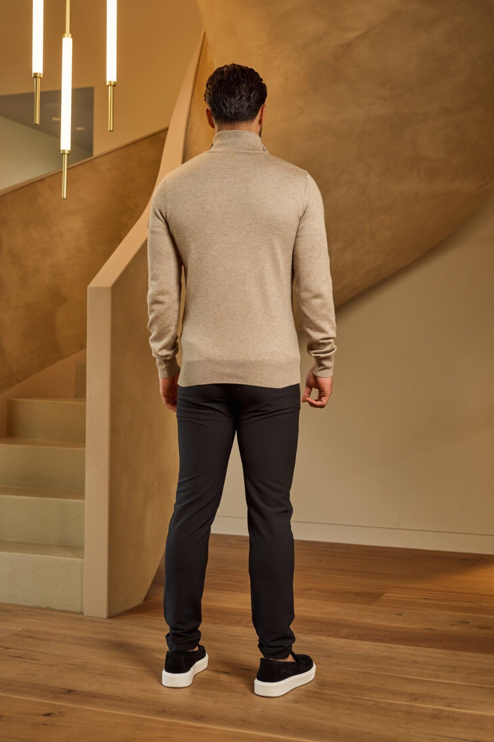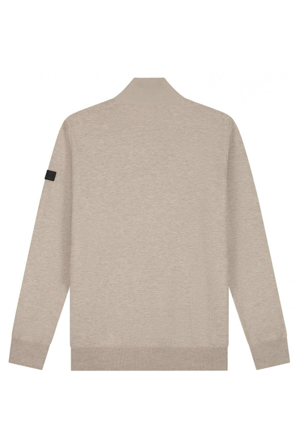Deze stijlvolle zandkleurige trui van Malelions voegt een subtiele elegantie toe aan je wintergarderobe. Gemaakt van een hoogwaardige mix van 52% viscose, 28% elastaan en 20% polyamide, biedt deze knitwear een comfortabele en flexibele pasvorm. De hoge kraag met ritssluiting geeft een moderne twist aan de klassieke look, terwijl het subtiele structuurpatroon een extra dimensie toevoegt aan het ontwerp. Zonder zakken behoudt het ontwerp zijn strakke uitstraling, wat perfect past bij diverse kledingcombinaties.