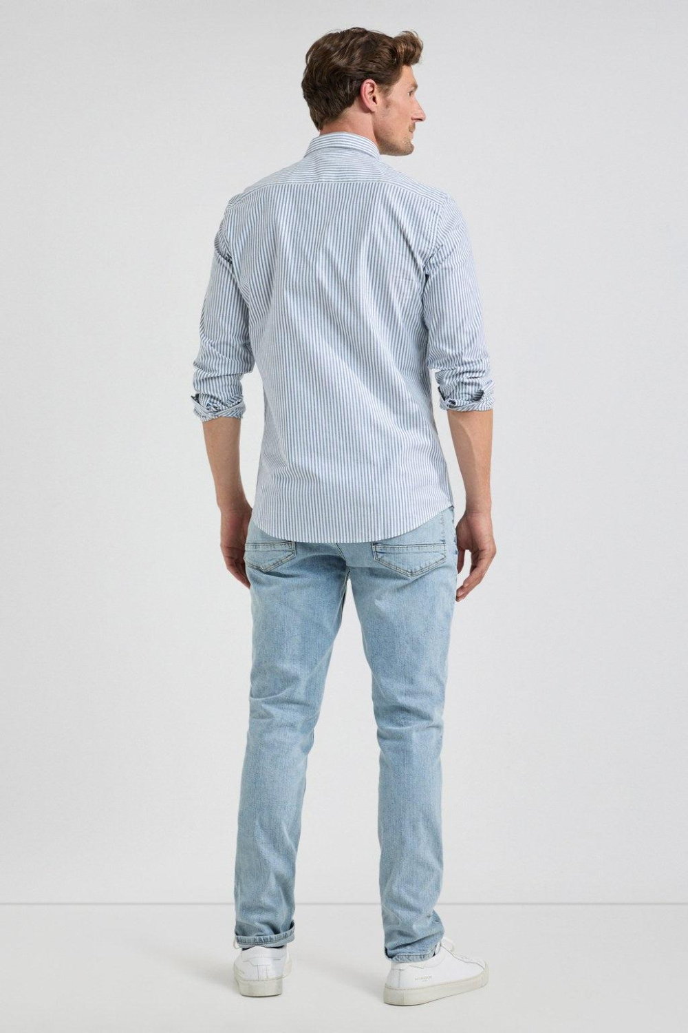 Dit stijlvolle navy streep overhemd van McGregor is een veelzijdige aanwinst voor je najaarsgarderobe. Gemaakt van 97% katoen en 3% elastan, biedt het een zacht en comfortabel draagcomfort dat geschikt is voor elke dag. De regular fit pasvorm zorgt voor een ontspannen uitstraling, terwijl de button-down kraag en knoopsluiting het geheel subtiel verfijnen. Het subtiele gestreepte patroon in navy tinten maakt het een ideale keuze voor zowel casual als smart casual gelegenheden, of je nu naar kantoor gaat of een weekendje weg plant. Met zijn tijdloze design is dit McGregor overhemd eenvoudig te combineren met verschillende kledingstijlen. Draag het met een lichte jeans voor een casual look of kies voor een nette broek voor een meer formele setting. De lange mouwen en de normale lengte zorgen voor een evenwichtige mix van stijl en comfort. Of je nu een middag in de stad doorbrengt of een belangrijke vergadering hebt, dit overhemd biedt de perfecte balans tussen casual en chique.