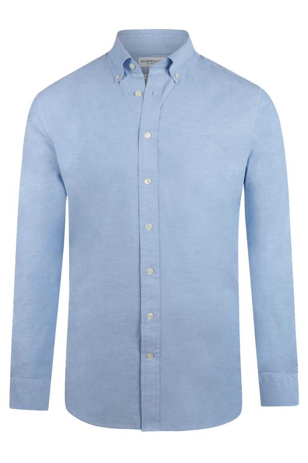 Dit casual lichtblauwe overhemd van McGregor is een stijlvolle toevoeging aan je collectie. Met zijn regular fit biedt het een comfortabele pasvorm die ideaal is voor dagelijks gebruik. De button-down kraag en knoopsluiting geven het een klassieke uitstraling die niet alleen geschikt is voor informele gelegenheden, maar ook in zakelijke settings niet misstaat. Gemaakt van 100% katoen, zorgt het gemêleerde patroon voor een subtiele textuur en een verfijnde look. De lange mouwen en normale lengte maken dit shirt tot een veelzijdig kledingstuk, perfect voor het lente seizoen. Combineer het eenvoudig met een jeans voor een relaxte uitstraling, of kleed het formeler af met een nette broek. De subtiele afwerking en aandacht voor detail, zoals de lichte knopen en het merklogo op de borst, maken dit McGregor overhemd tot een betrouwbare keuze voor elke gelegenheid, van een dag op kantoor tot een weekenduitje.