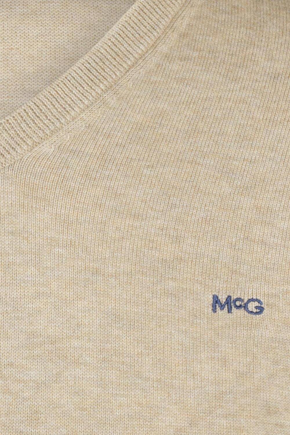 Gemeleerde trui van McGregor met lange mouwen. Dit model heeft een v hals en is afgewerkt met ribgebreide boorden.