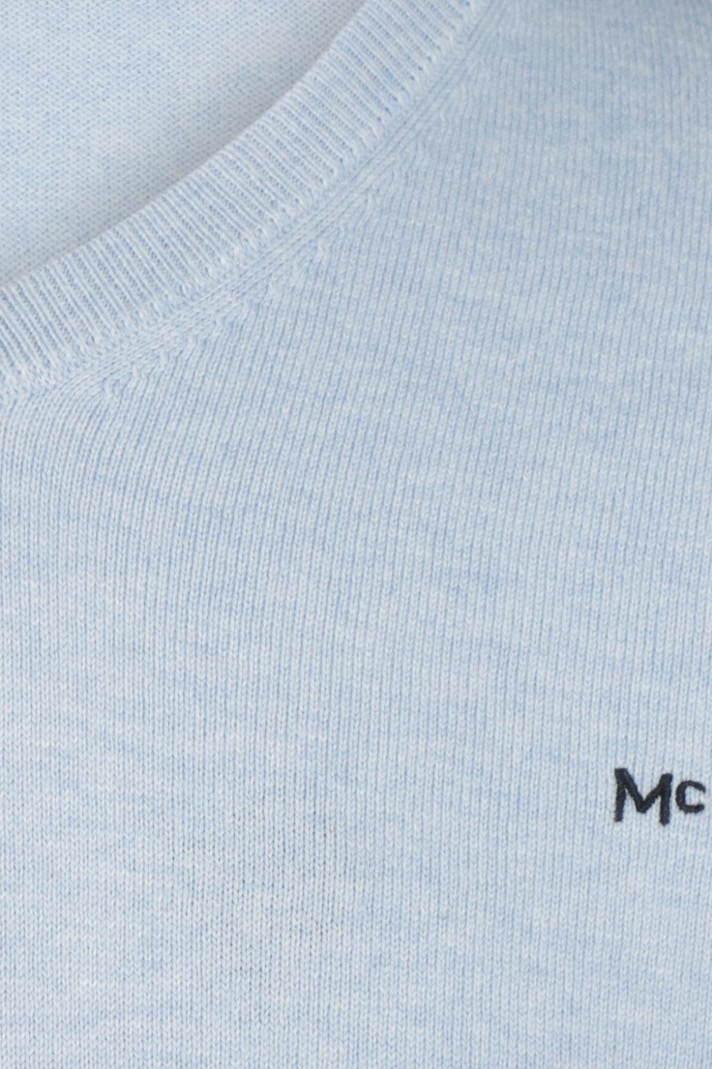 Deze lichtblauwe heren trui van McGregor is een stijlvolle toevoeging aan je lente garderobe. De trui heeft een slim fit pasvorm die je een moderne uitstraling geeft, zonder in te boeten op comfort. Gemaakt van 95% katoen en 5% kasjmier, biedt deze trui een luxe gevoel dat zacht aanvoelt op je huid. De gemêleerde textuur voegt subtiele diepte toe aan het ontwerp, terwijl de V-hals een klassieke touch geeft. Het discrete McGregor logo op de borst voegt een verfijnd detail toe dat bijdraagt aan de algehele elegante uitstraling. De lange mouwen en de normale lengte maken deze trui geschikt voor zowel casual als meer formele settings. Combineer hem met een nette broek voor een zakelijke bijeenkomst of draag hem relaxed over je favoriete jeans voor een stijlvolle, ontspannen look tijdens een weekenduitje. Perfect voor een lenteochtend of een koele avond. Deze trui is een veelzijdige keuze die moeiteloos je stijl versterkt.