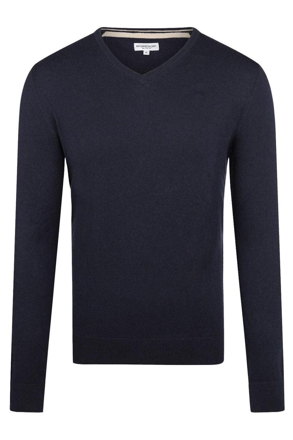 Deze stijlvolle navy trui van McGregor is een perfecte aanvulling voor je wintergarderobe. De regular fit pasvorm biedt comfort zonder in te leveren op stijl. Gemaakt van hoogwaardige knitwear met een subtiele gemêleerde textuur, straalt deze trui tijdloze klasse uit. De V-hals maakt het een veelzijdig stuk dat zowel casual als net gedragen kan worden. In combinatie met een overhemd krijg je een verzorgde look voor naar kantoor, terwijl een jeans zorgt voor een meer ontspannen uitstraling tijdens een etentje met vrienden.