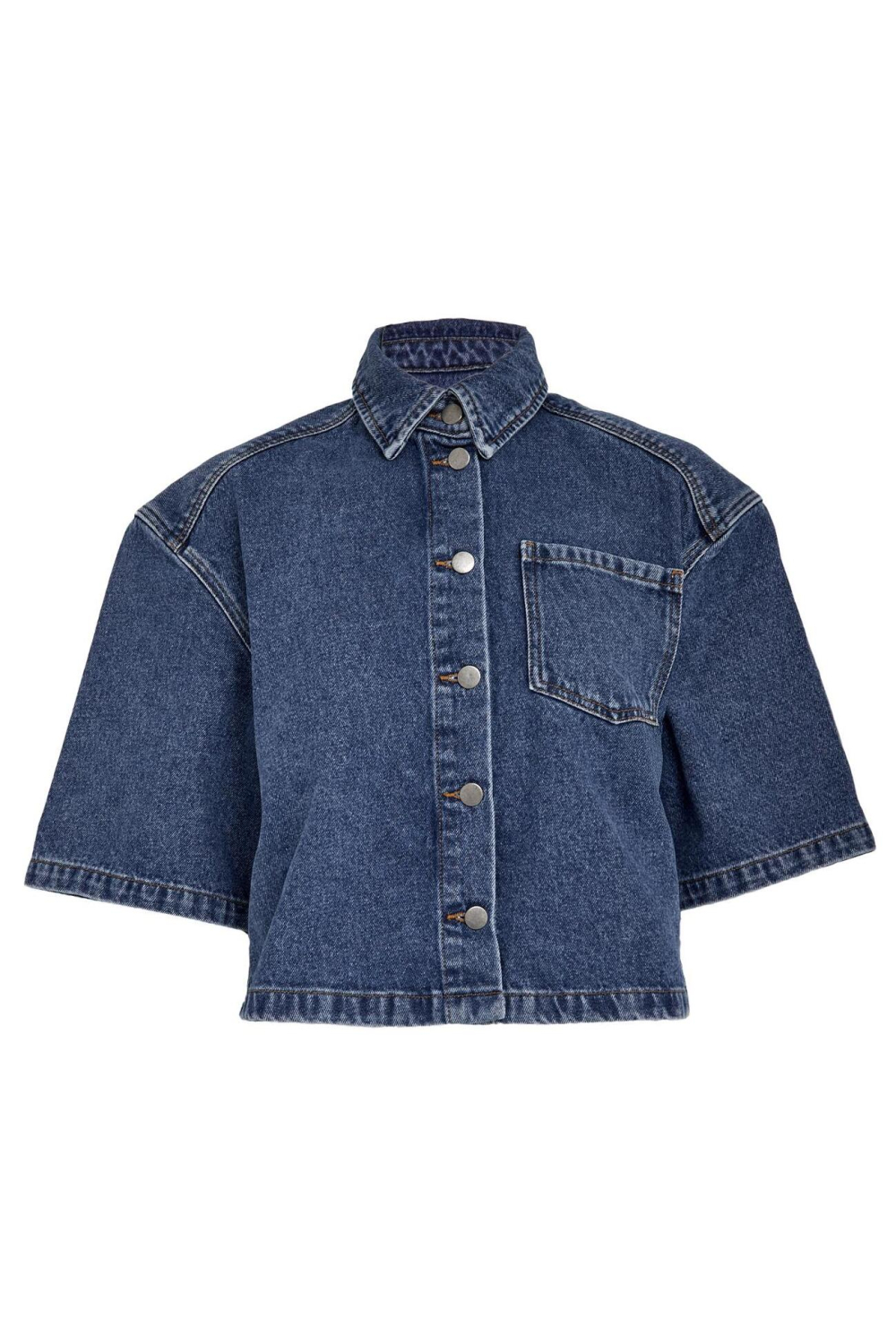 Deze denim blouse van Minus is een opvallende toevoeging aan je lente garderobe. Het oversized model met korte lengte en 3/4 mouwen biedt een casual, maar stijlvolle uitstraling. De knoopsluiting en puntkraag geven het geheel een klassieke touch. De borstzakken voegen een speels element toe dat zowel praktisch als esthetisch is. De warme denimtint maakt deze blouse veelzijdig inzetbaar voor diverse gelegenheden. Gemaakt van 100% katoen, voelt de stof zacht aan en is hij ideaal voor de wat frissere lentedagen. Deze blouse is perfect om een relaxte, yet modieuze look te creëren. Combineer hem met een lichte broek voor een frisse voorjaarslook of draag hem over een zomers jurkje voor die extra dimensie. Of je nu een dagje uit gaat of een informele afspraak hebt, deze Minus blouse biedt de perfecte balans tussen comfort en stijl.