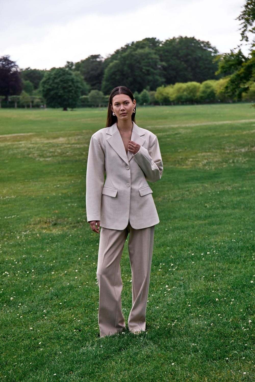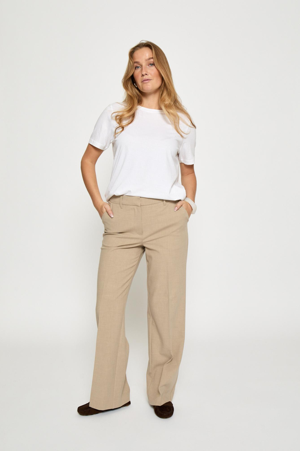 De Minus damesbroek in de kleur 9015 Sand Gray combineert elegantie met comfort dankzij de wide leg pasvorm en regular waist. Het gemêleerde patroon in de neutrale tint maakt het een ideale keuze voor zowel casual als zakelijke settings. De broek is vervaardigd uit een hoogwaardige mix van 65% polyester, 30% viscose en 5% elastan, wat zorgt voor een zachte en duurzame finish. Met steekzakken en een subtiele knoop- en ritssluiting sluit deze broek naadloos aan op elke stijlvolle outfit. Of je nu een dag op kantoor hebt of een ontspannen dag in de stad, deze broek biedt veelzijdige mogelijkheden. Door de normale lengte past hij perfect bij sneakers of nette schoenen. Laat je verrassen door de flexibele toepassing van deze broek voor het lenteseizoen en geef je garderobe een verfijnde touch.