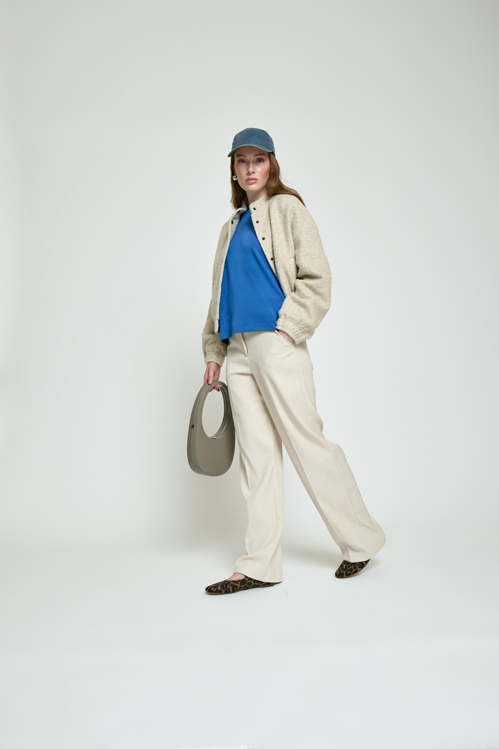 Deze casual jas van Minus is een stijlvolle toevoeging aan jouw lente garderobe. Met zijn oversized pasvorm en ronde hals biedt het comfort en een moderne uitstraling. De kleur Sand Gray en het gestructureerde patroon geven deze korte jas een unieke touch. De drukknoopsluiting en handige steekzakken maken het ontwerp praktisch en veelzijdig. Gemaakt van 100% polyester met een zachte voering, is deze jas ideaal voor frisse dagen. Je kunt deze jas makkelijk combineren met verschillende stijlen. Of je nu een ontspannen wandeling maakt of een dagje uit plant, de jas past perfect bij een casual look. Combineer het met een lichte broek en een opvallend topje voor een frisse, stijlvolle uitstraling. Dankzij de lange mouwen en de lichte stof is deze jas de perfecte keuze voor een comfortabele en modieuze overgang naar de warmere maanden. Meer informatie: De totale lengte is 54 cm bij maat 36.