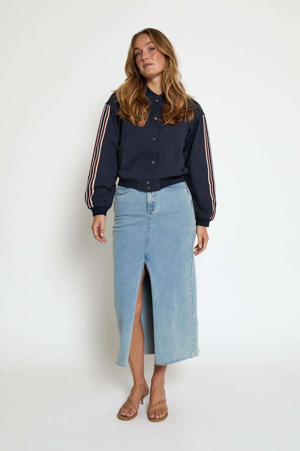 Deze stijlvolle jas van Minus, in de kleur 2994 SKY CAPTAIN, is een eigentijdse aanvulling op je herfstgarderobe. Het ontwerp met gestreepte details aan de mouwen en de praktische drukknoopsluiting geeft deze jas een unieke casual uitstraling. De ronde halslijn en de regular fit pasvorm zorgen ervoor dat jij je comfortabel voelt in elke situatie. Of je nu een boodschap doet of met vrienden afspreekt, deze jas biedt je de perfecte balans tussen stijl en gemakkelijke draagbaarheid. Door het gebruik van hoogwaardige materialen zoals 68% viscose, 27% nylon en 5% elastaan, voelt de jas rijk en soepel aan. De lange mouwen en het korte design maken het een geschikte keuze voor de frisse herfstdagen. Steekzakken bieden praktische opbergruimte terwijl het gestreepte patroon op de mouwen een speelse twist aan je outfit toevoegt. Combineer deze jas met je favoriete jeans of een stijlvolle rok voor een complete look. Of je nu een relaxte middag gepland hebt of een informele lunch, deze jas past perfect bij elke gelegenheid. Meer informatie: De totale lengte is 54 cm bij maat S.