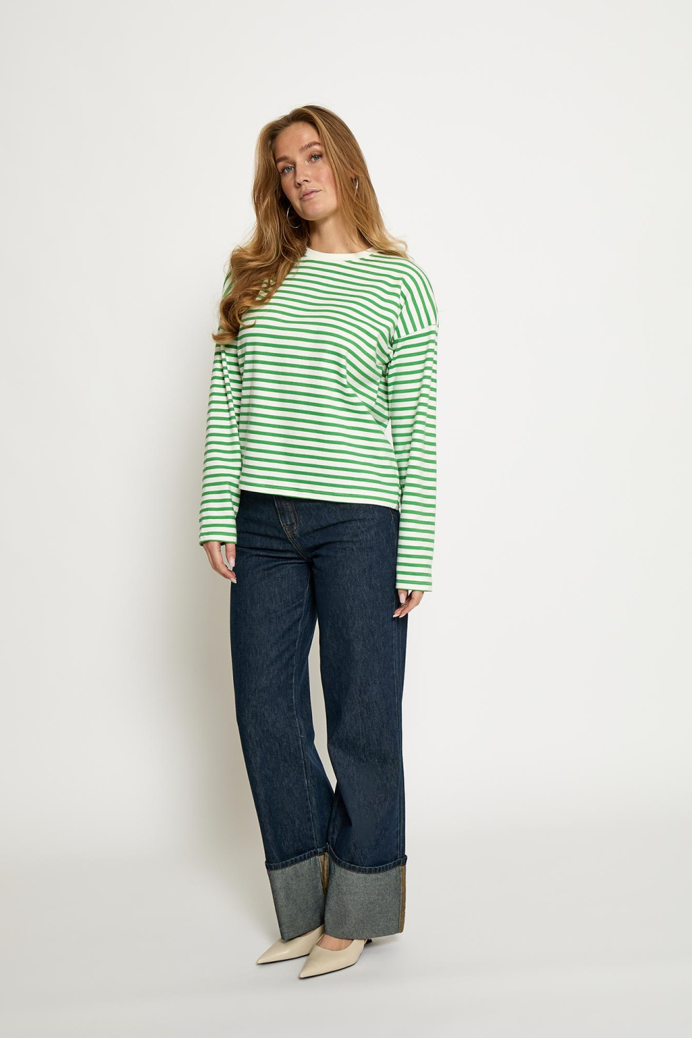 Dit casual dames T-shirt van Minus, gemaakt van 100% organisch katoen, is een comfortabele toevoeging aan je garderobe. Het heeft een opvallend gestreept patroon in verfrissende groene en witte tinten, samen met een ronde hals en lange mouwen voor een luchtige lente-look. Dankzij de regular fit biedt het T-shirt een ontspannen pasvorm die gemakkelijk te combineren is met je favoriete jeans of shorts. De veelzijdigheid van dit T-shirt maakt het perfect voor allerlei gelegenheden, variërend van een informele dag op kantoor tot een gezellige middag met vrienden in het park. Het duurzame materiaal zorgt ervoor dat je stijlvol blijft bijdragen aan een groenere wereld. Of je nu kiest voor een casual of iets chiquere uitstraling, dit T-shirt van Minus is een essentiële keuze voor de lente.