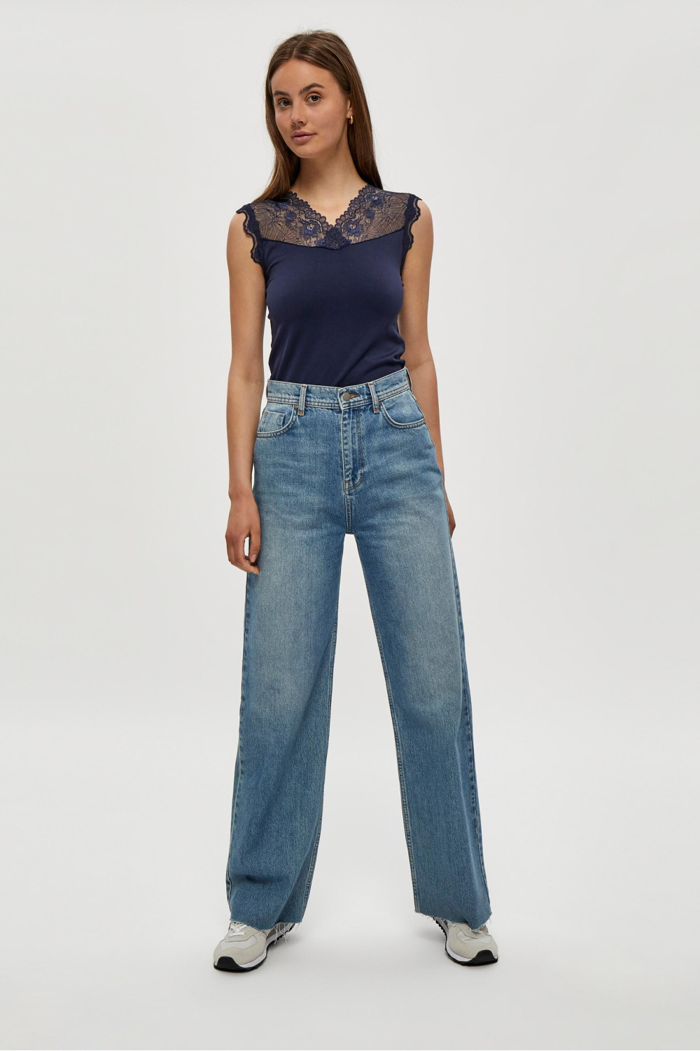 Deze elegante dames top van Minus is een subtiele en verfijnde toevoeging aan je garderobe. Het kledingstuk heeft een casual stijl, met een delicate kanten inzet aan de voorzijde, die een vleugje romantiek toevoegt. De diep navy kleur, bekend als Black Iris, combineert moeiteloos met diverse outfits. Dankzij het mouwloze ontwerp en de V-hals geeft de top je een flatterende en luchtige uitstraling, ideaal voor warmer weer. Gemaakt van een comfortabele mix van 95% polyamide en 5% elastaan, biedt de top een prettige pasvorm met voldoende stretch. De normale lengte maakt het eenvoudig om hem in een broek of rok te stoppen voor een verzorgde look. Deze top is perfect voor een informele dag op kantoor of een ontspannen weekenduitje met vrienden. Draag hem met een jeans of combineer met een rok voor een iets gekledere uitstraling. Dit veelzijdige stuk is een must voor elke modieuze vrouw.